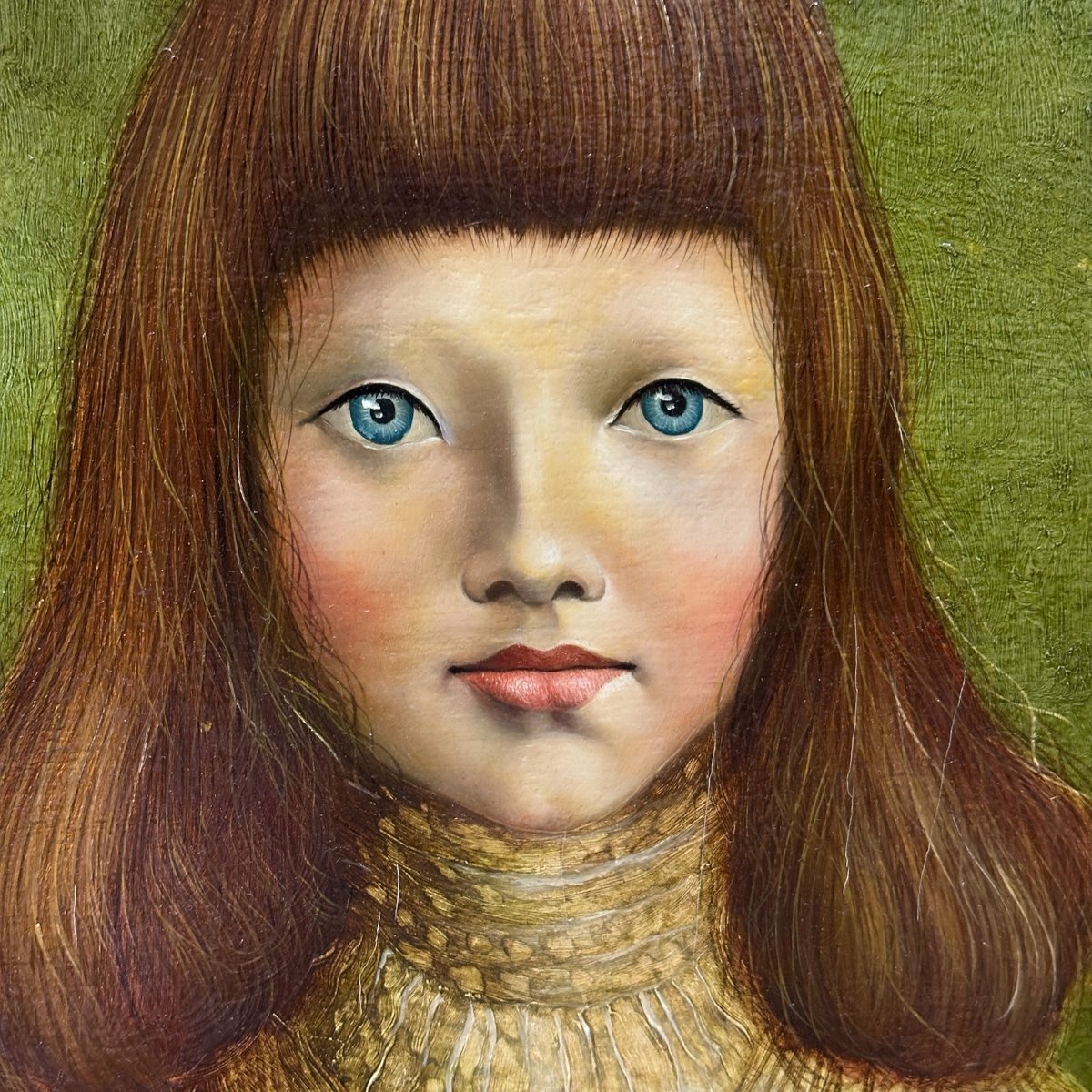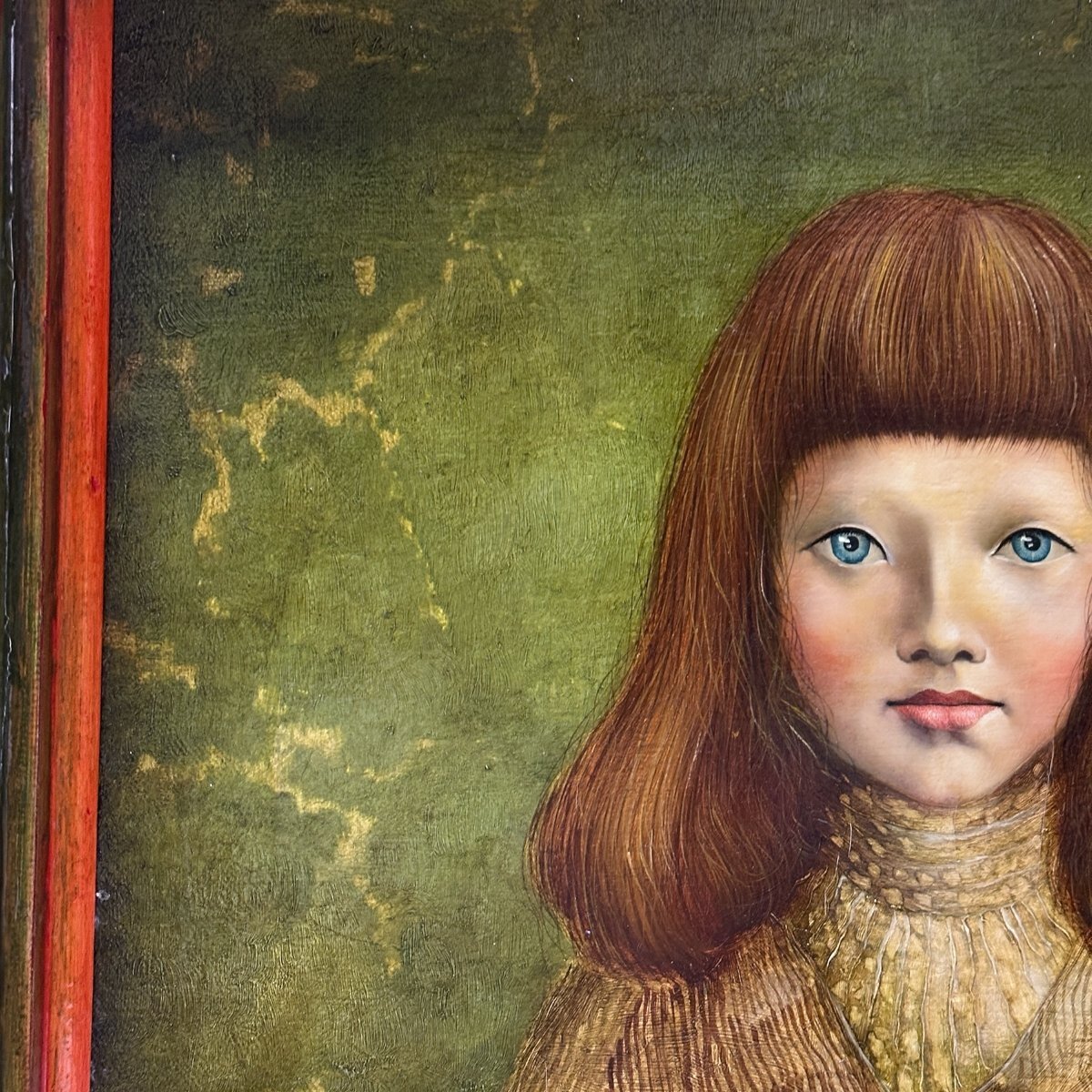 B275 桜田晴義 少女 1979年 油彩 額装 10F タトウ箱 スペイン最優秀作家展グランプリ受賞 リアリズム 真作 | |||