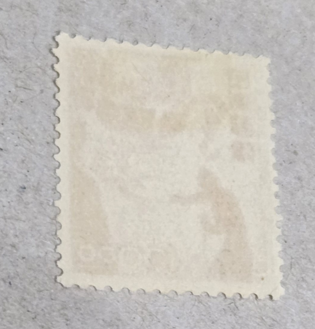 画像真ん中付近に薄い横線がありますが、これは切手を固定して撮影時のフイルムの跡ですので、切手にはありません。