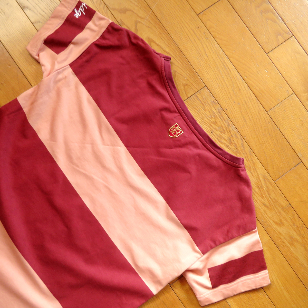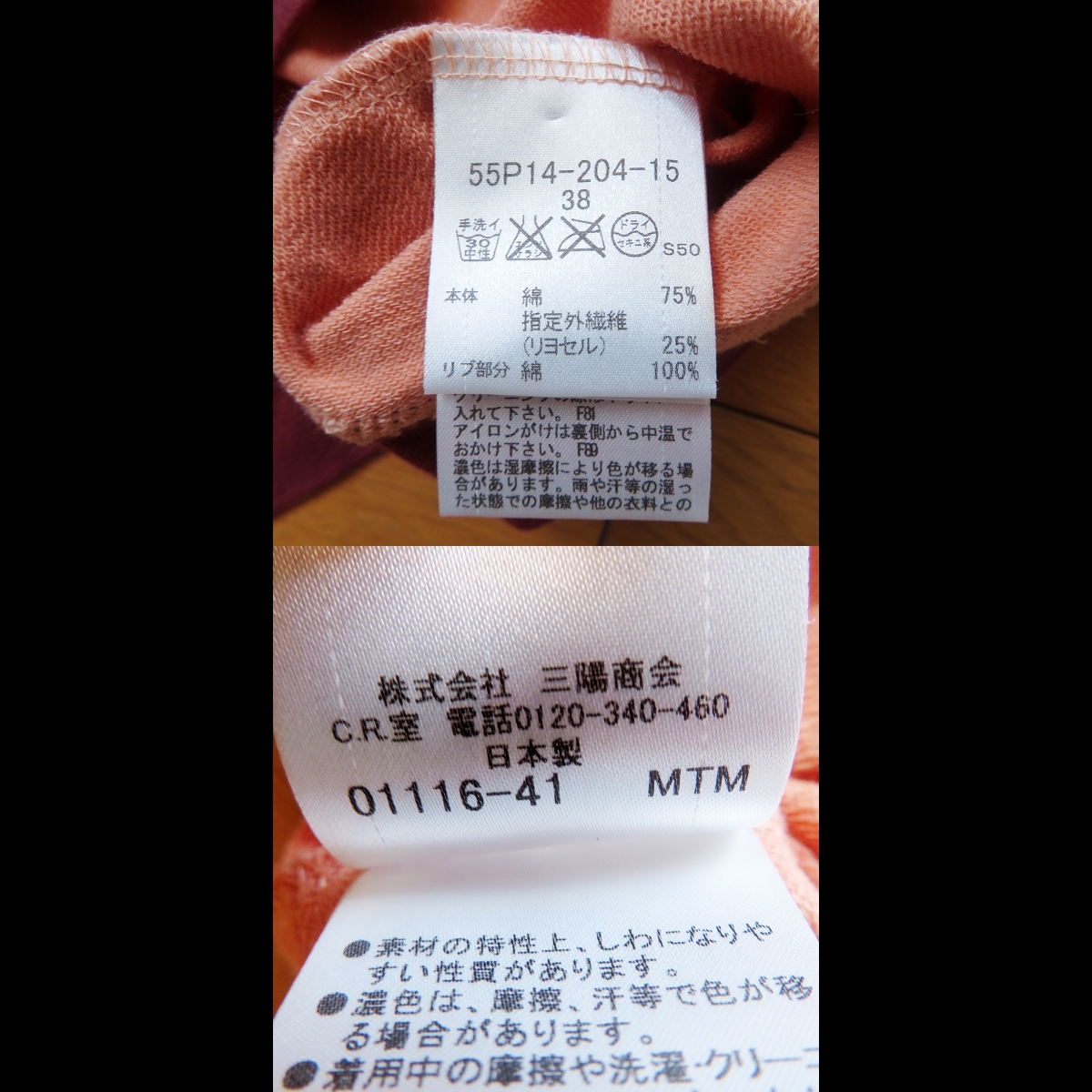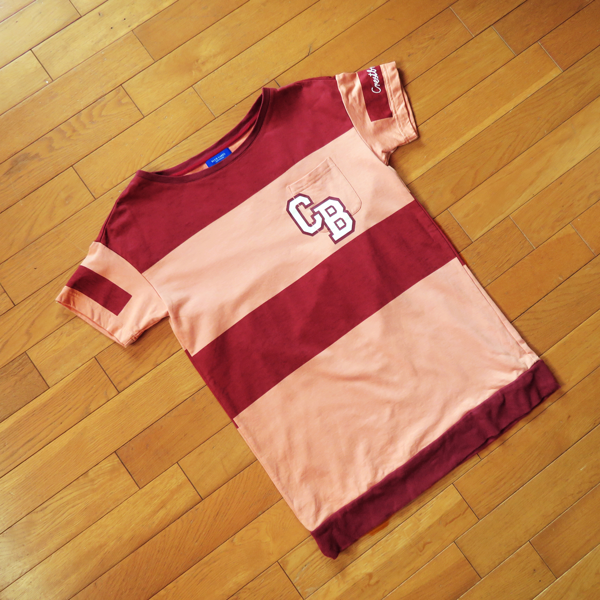ワイン色とピンクオレンジのボーダー柄、胸にはロゴ、袖にもロゴの刺繍が入った、 とっても可愛いブルーレーベルクレストブリッジの半袖Tシャツです。 ドロップショルダー系、オーバーサイズで少し大きめの作りになっています。 生地はコットンで、薄めではなく、割としっかりとした生地になっています。 おしゃれ可愛い半袖Tシャツ、アウターインナーにも使えて、可愛くてコーディネイトの主役になれます。 おすすめです!いかがでしょうか^^ 【コンディション】 多少の使用感はありますが、着用回数は少なめで大きなダメージ、目立つ汚れ等はありません。 まぁまぁきれいかと思います。十分着用していただます。 ---------------------------------------------- 【表記】サイズ 38 (M~Lぐらい) 【実寸】 平置き 肩幅 52cm (水平計測) 身幅 48.5cm (身幅は脇の下あたりで計測) 袖丈 11cm (下側計測) 着丈 71cm (後ろ側 上から下まで) 前後程度になります。※平置き、素人採寸になりますので、多少の誤差はお許し下さい。 ----------------------------------------------- 【色】 ワインレッド オレンジピンク 【素材】 コットン100% 【USED品】 ----------------------------------------------- ◆ 他にもいろいろデニムなど出品していますので、よかったら見ていってください。 ◆ もちろん同梱もできますので、お気軽にご質問ください。 ◆ 気持ちの良いお取引を目指していますので、ご質問は事前にお気軽にどうぞ。 終了直前だとお答えできない場合があります。どうぞよろしくお願い致します。 | ||||