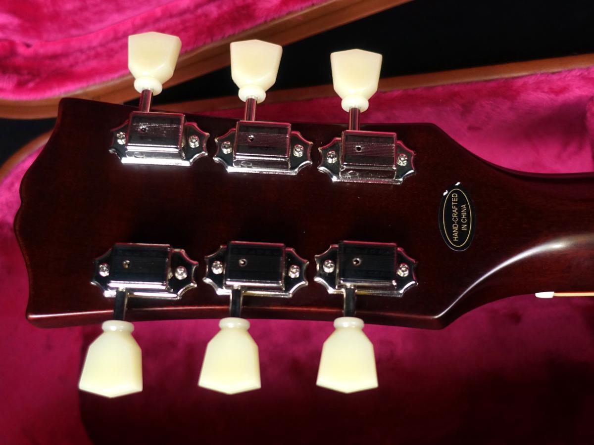 VOS(ヴィンテージ・オリジナル・シーン)フィニッシュ、Gibson Custombuckerハムバッキング・ピックアップ、Switchcraftセレクタースイッチと1/4”出力ジャック、CTSポット、50年代風のワイヤリング、Malloryコンデンサー、オリジナル同様にベベル加工が施されていないピックガード、エピフォン・デラックスヴィンテージ・チューナー(キーストンボタン付き)等、充実した仕様を誇ります。