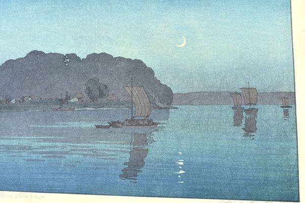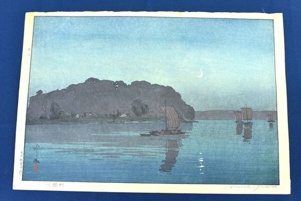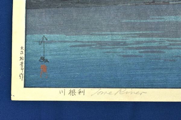 吉田博版画「利根川」 木版画 自摺 サイン 27×40 大15 Hiroshi Yoshida