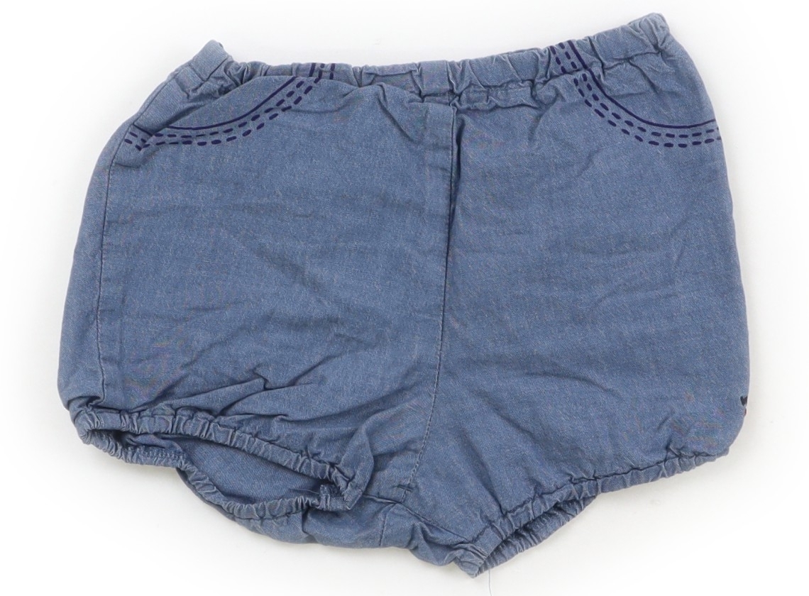 タンガリー調。実際のサイズ表記は、F(70-90)。ウエストゴムがねじれています。シワ感・洗いざらし感があります。