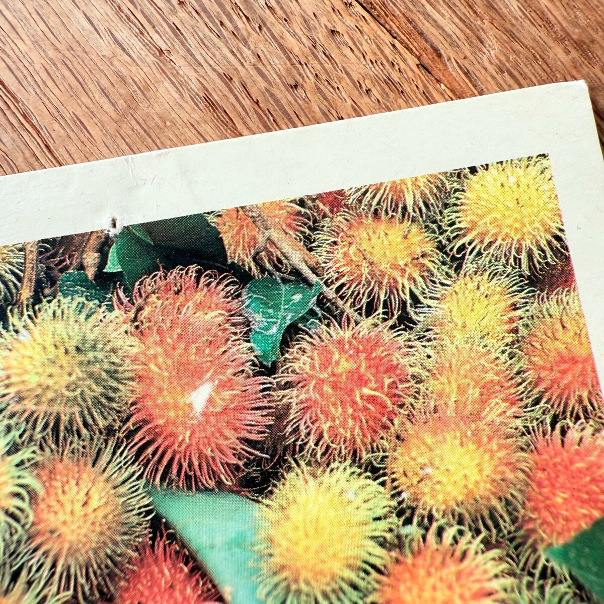 ・「マレーシア」のランブータンと赤いバッグのインパクト写真
