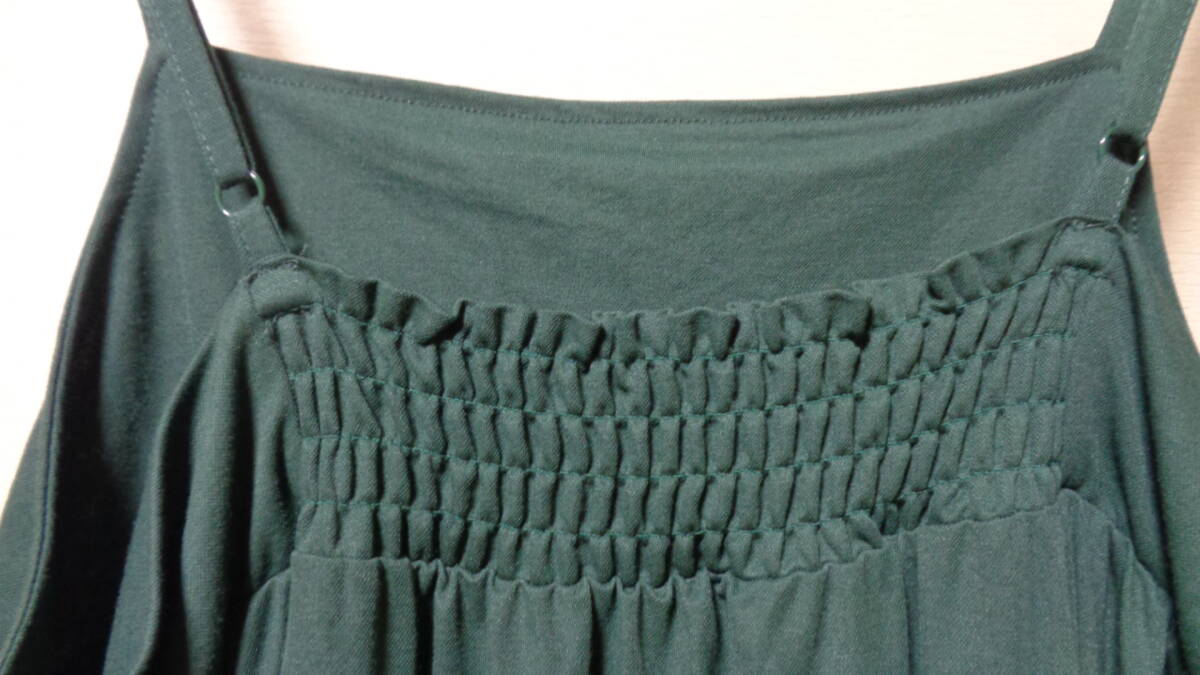 背中、ウエスト部分はゴム仕様で、伸びます。