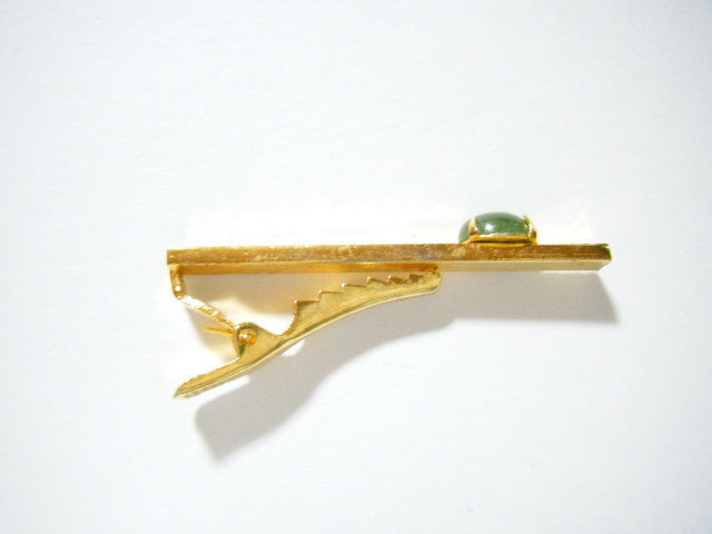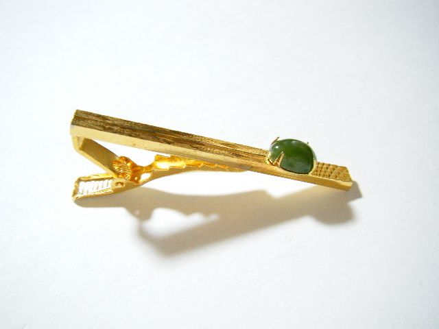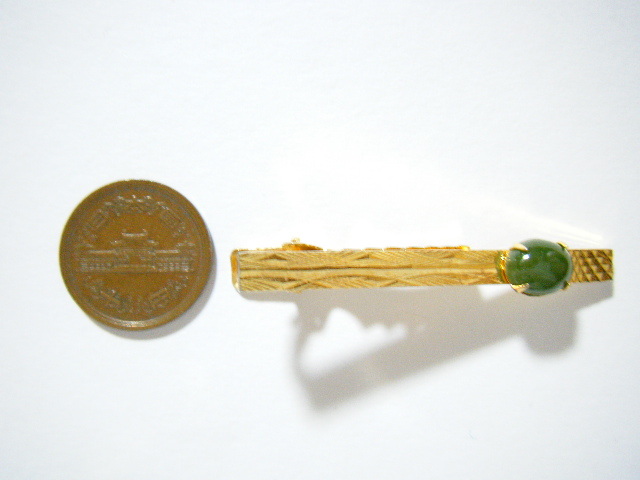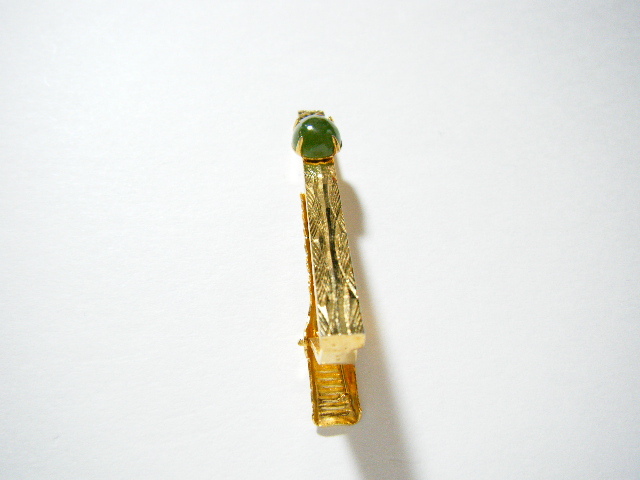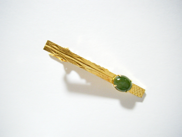 ★ネフライト? 緑色の石 ネクタイピン タイピン ゴールドカラー【OM21】