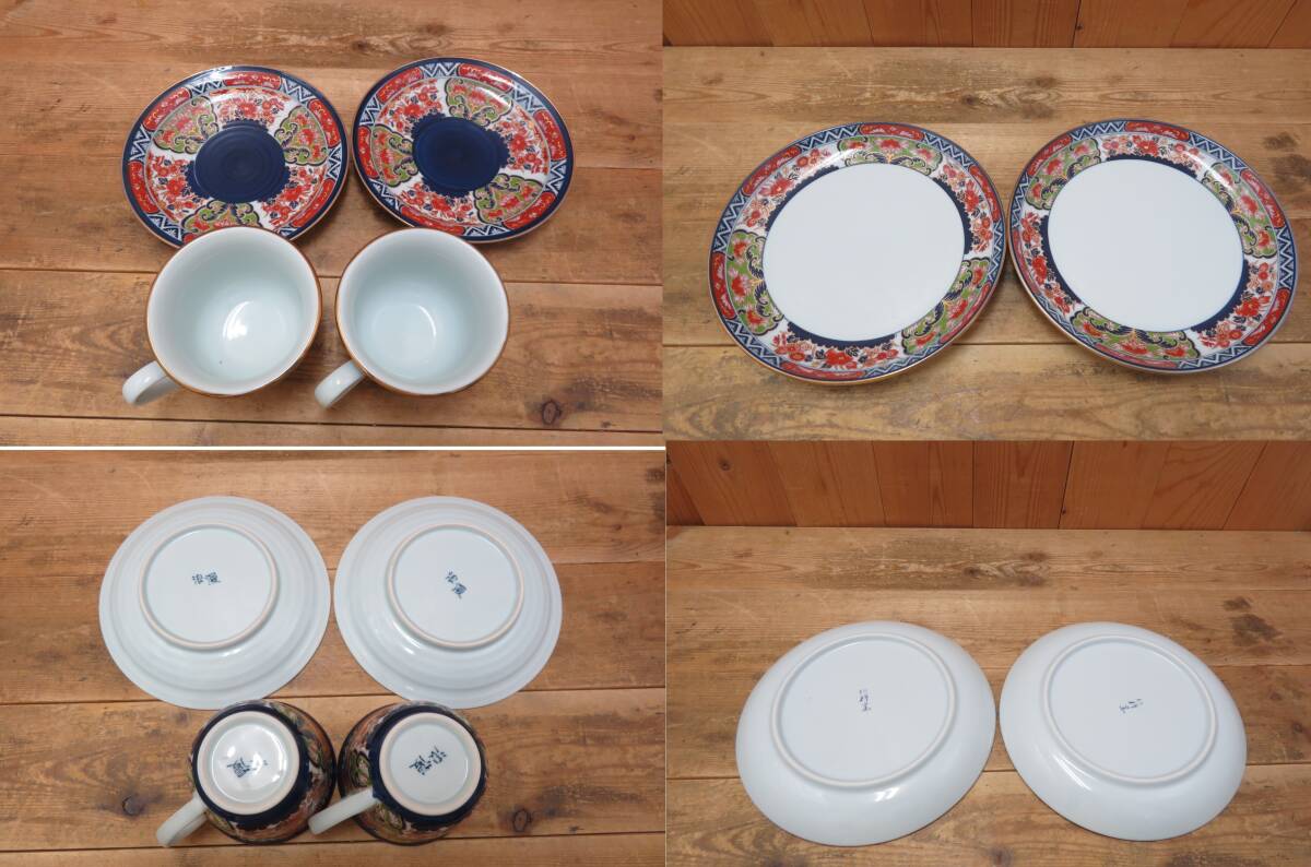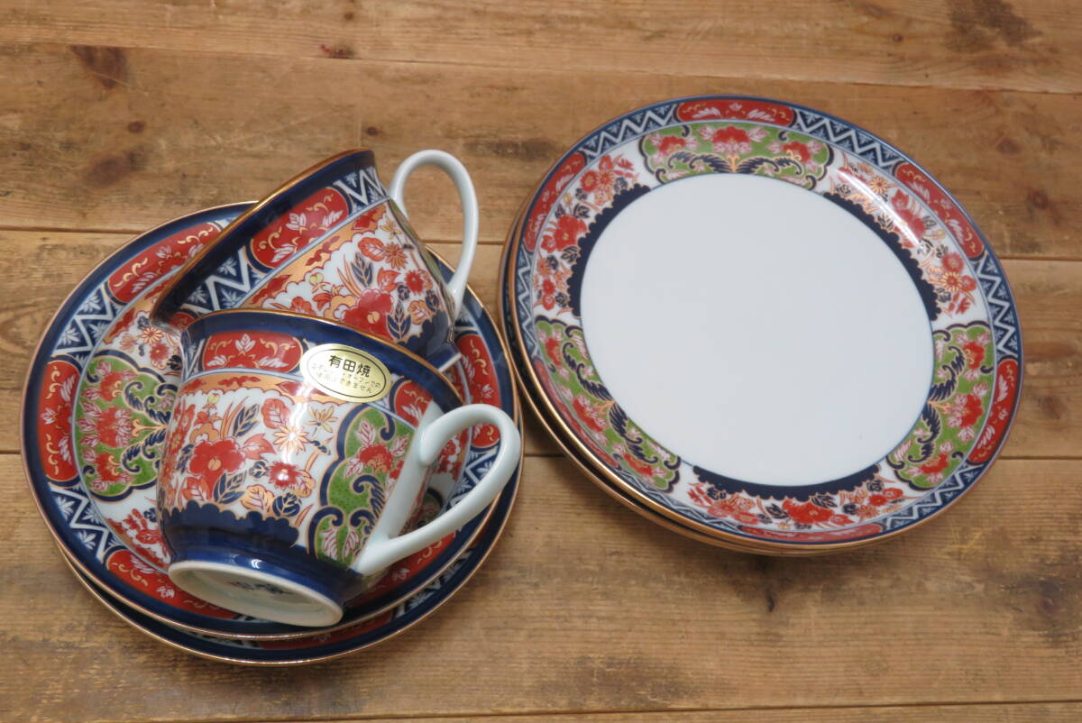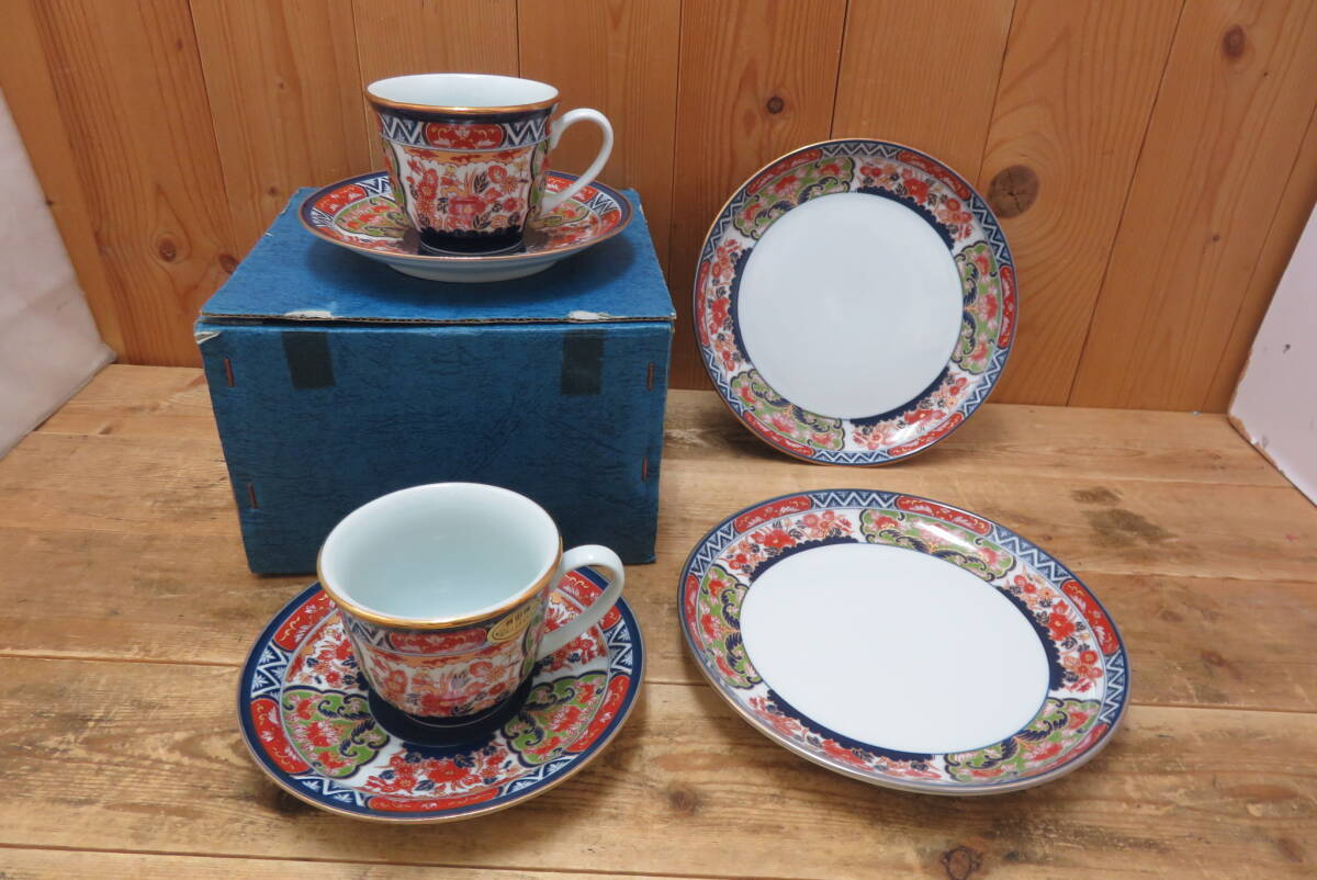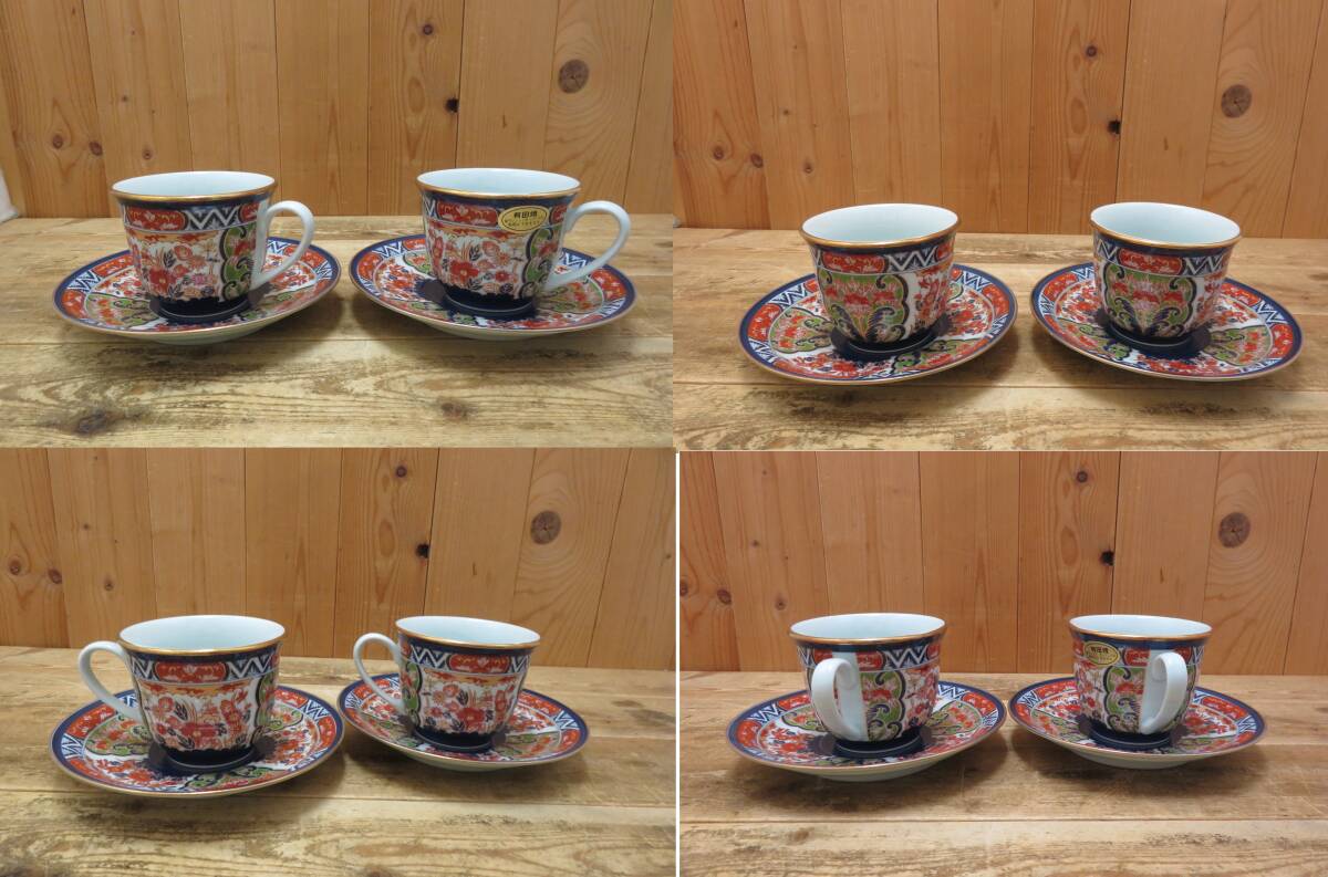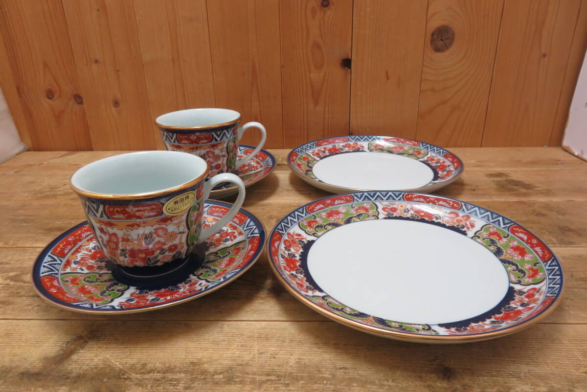 即決・美品☆有田焼・カップ&ソーサー 2客/ケーキ皿 2枚・②・ペア・古伊万里華紋・コーヒー碗皿・浪漫 仁祥窯・珈琲カップ
