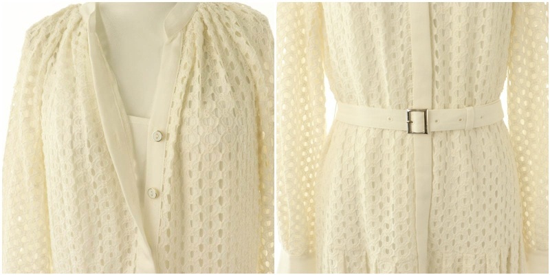 ダイアグラム グレースコンチネンタル Diagram GRACE CONTINENTAL 25SS メッシュレースワンピース インナー付き ベルト付き 36 白 /MI ■OS レディース
