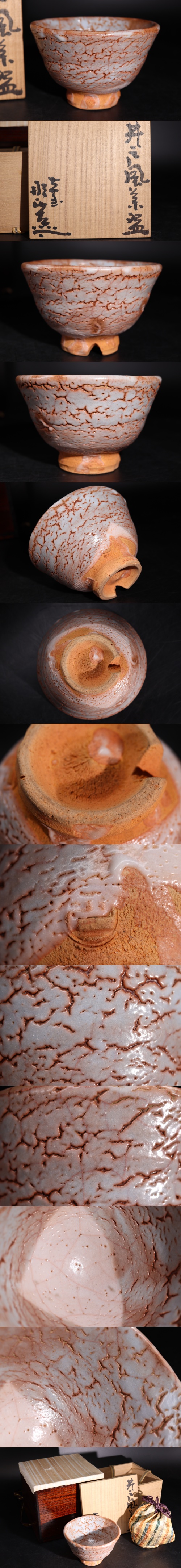 | 月形那比古 作 「 井戸風 茶碗 」 二重箱付 / 萩焼 茶器 煎茶道具 煎茶飾 .G2098 |