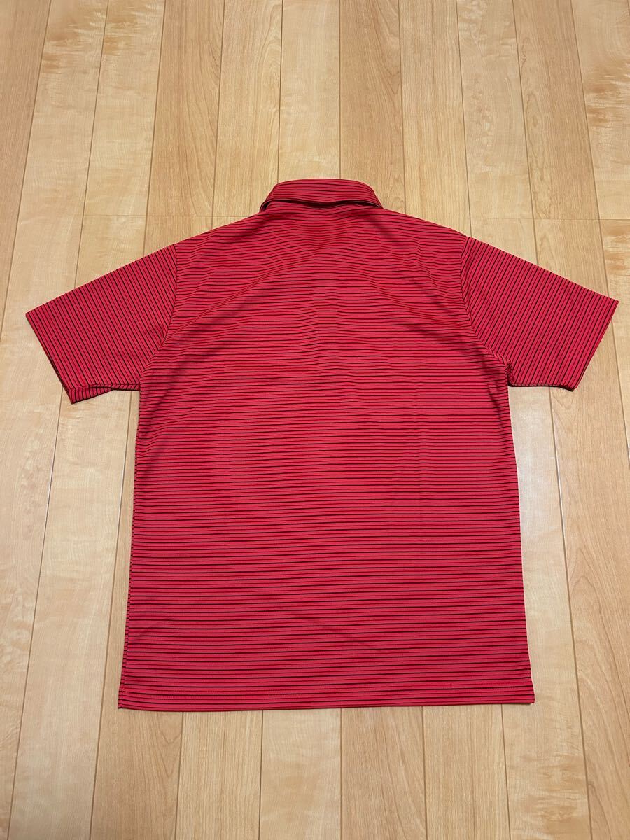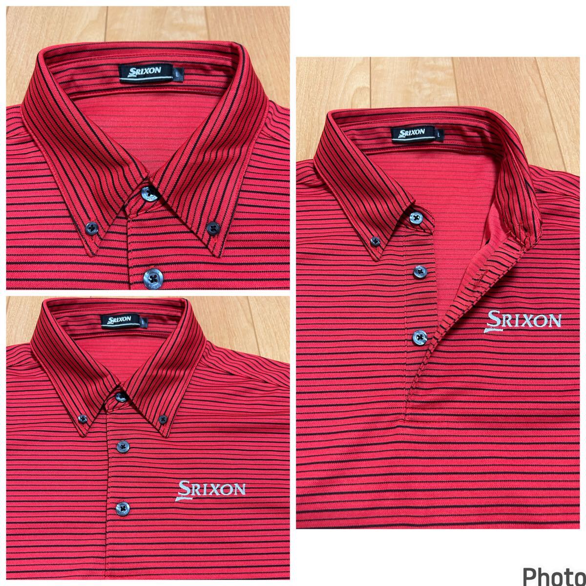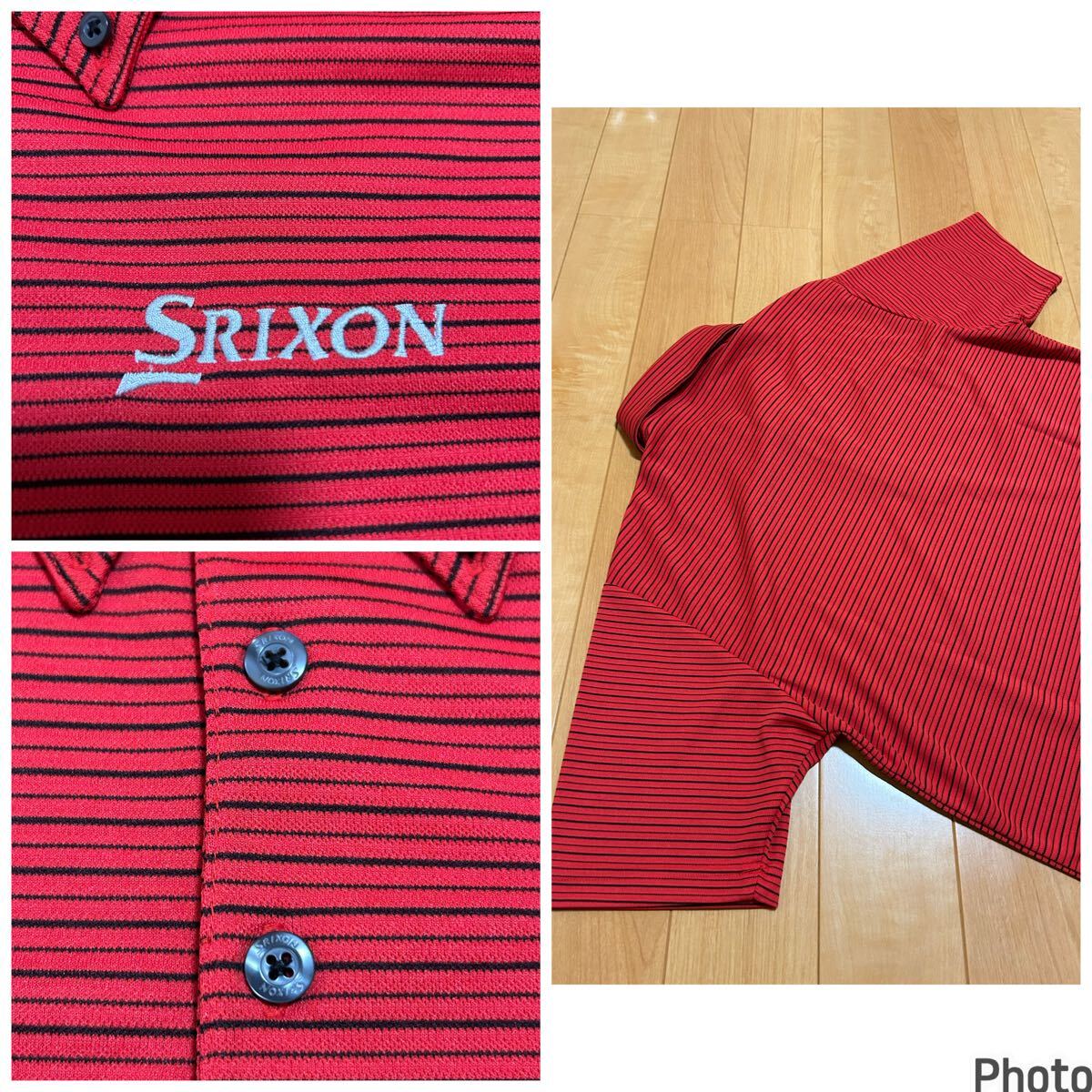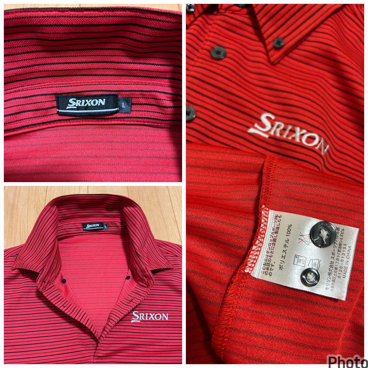 着用少な目.美品★SRIXON/スリクソン メンズサイズL大き目 快適速乾ドライ.半袖BDポロシャツ ロゴ刺繍入&全面ブラックボーダー柄 GOLF