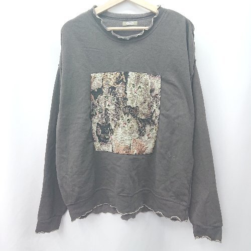 ◇ ⊇ kutir クティ―ル ネコワッペン 長袖 トレーナーカットソー サイズF グレー系 レディース E