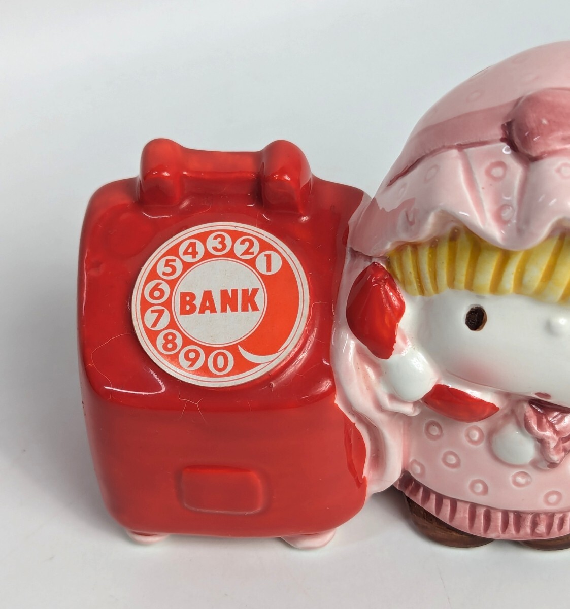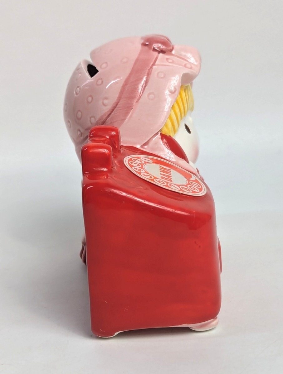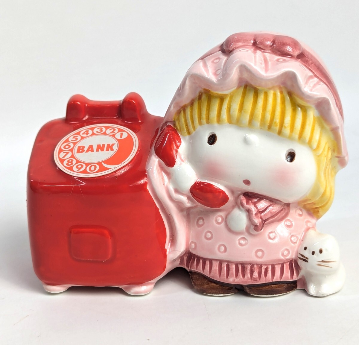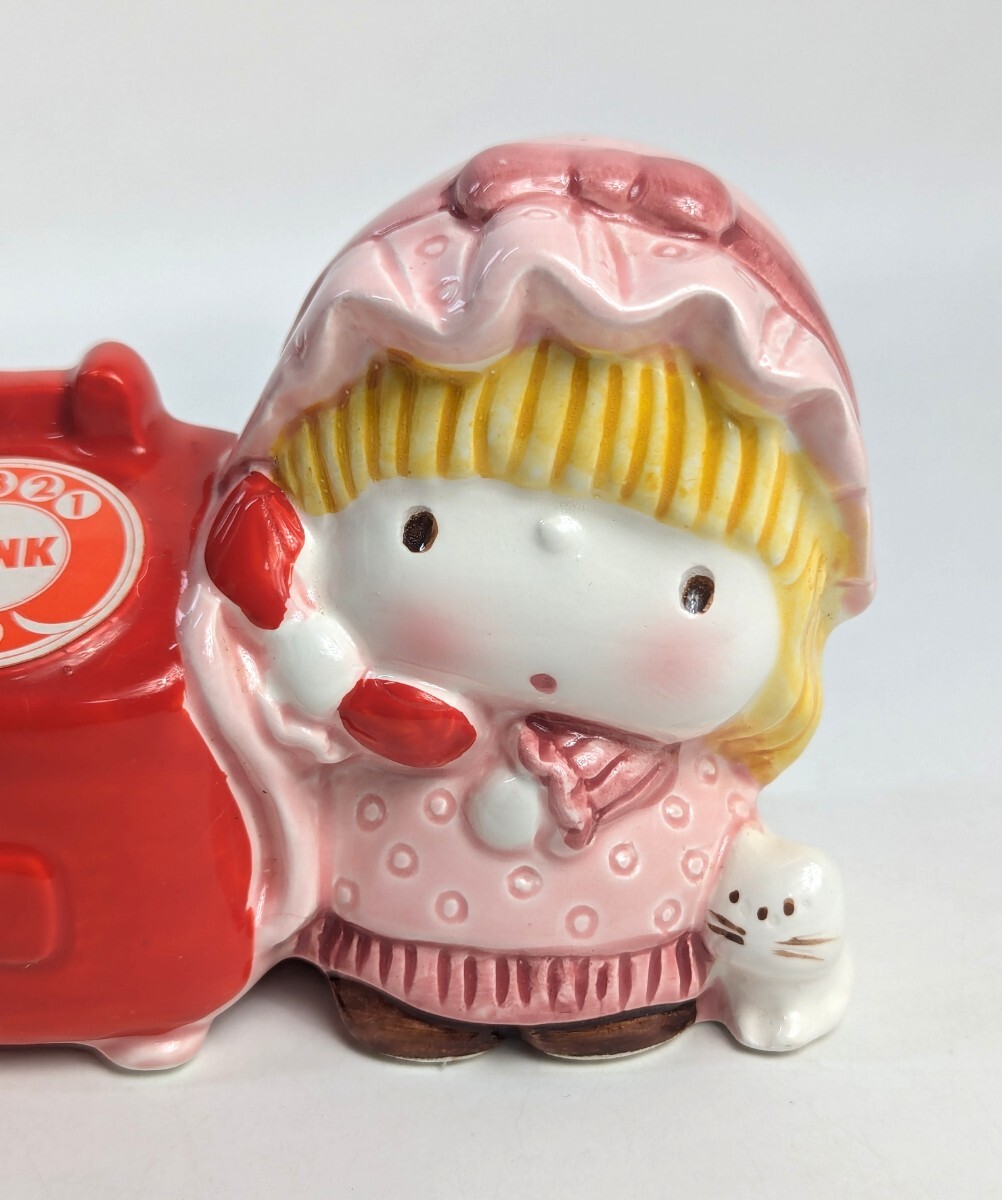 当時物 電話をかける女の子 貯金箱 高さ8.5cm幅10.5cmぐらいです 陶器製 TOKAI 当時物 ガラスケースに飾ってました