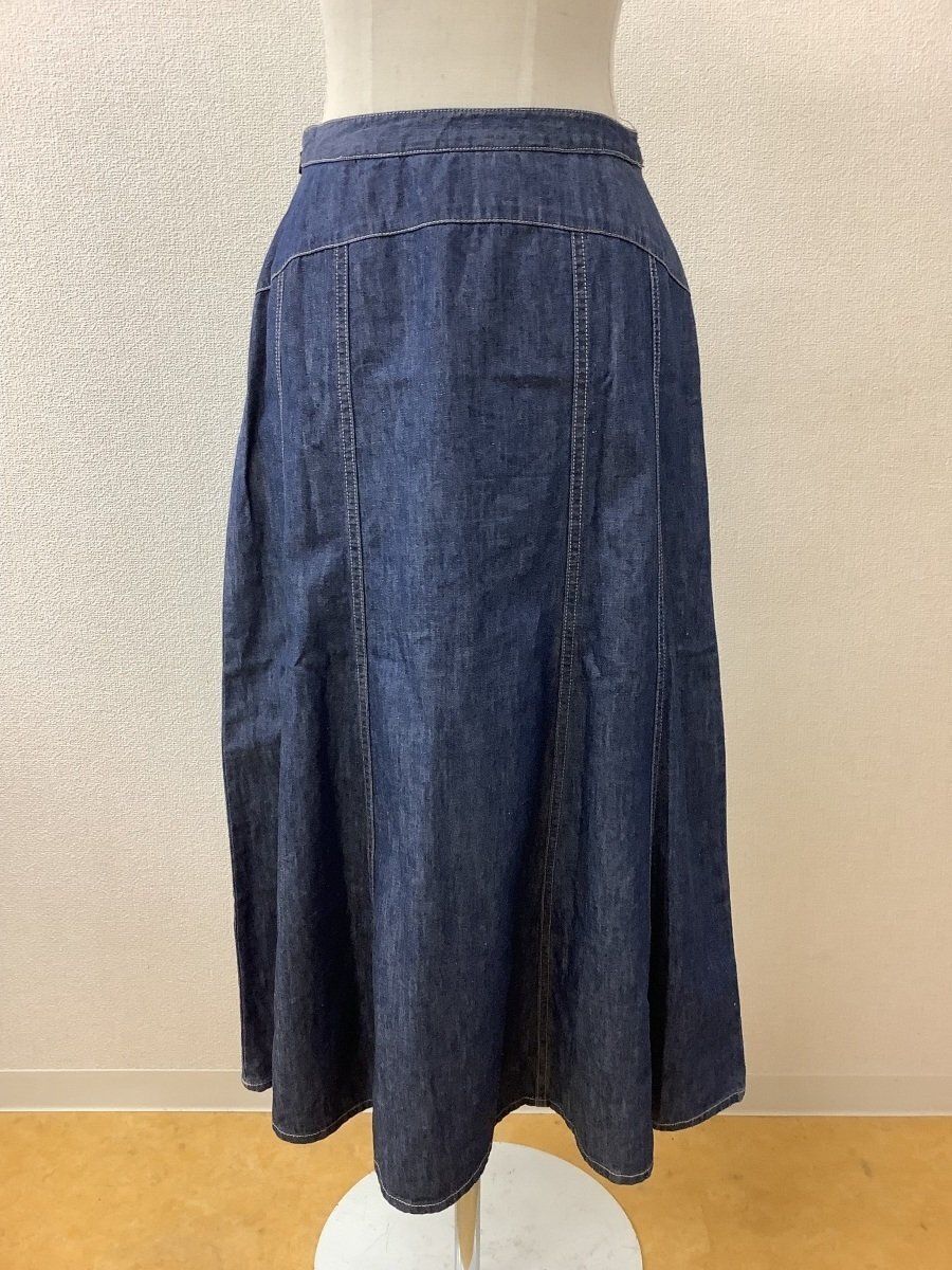 | 管理番号:136432 ローラアシュレイ ブルーデニム風 薄手生地スカート 表示サイズ:9 実寸(参考)