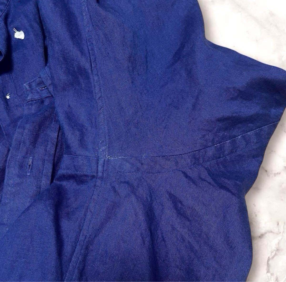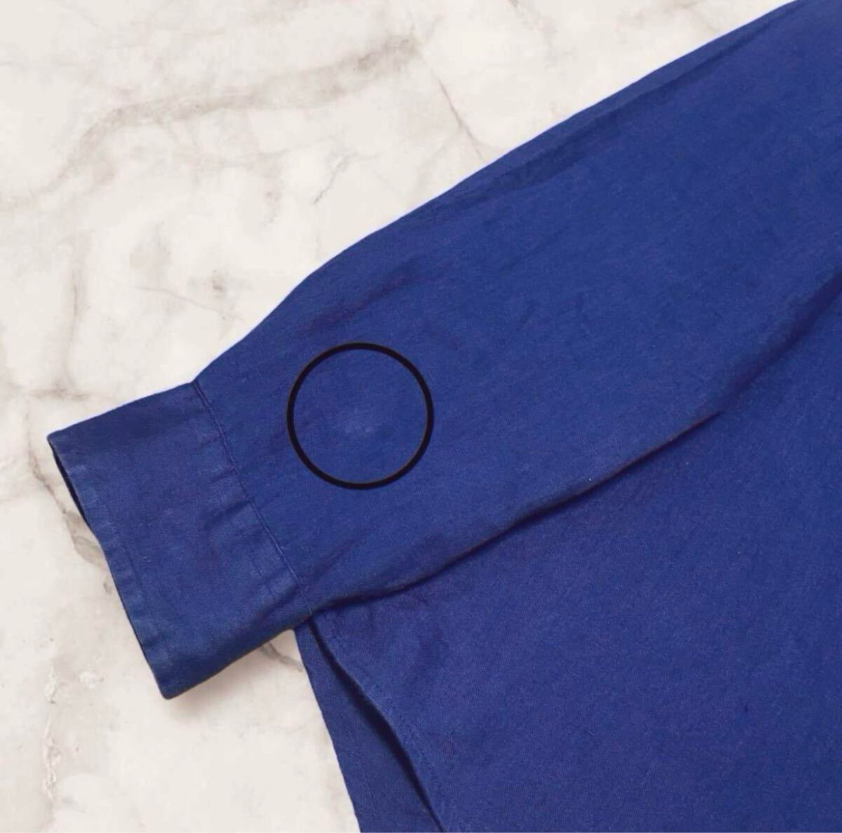 リネン100%製品の特性上どうしてもヨレやシワ、色むらや細かいツレ、目の荒い部分などは当初からございます。加えて経年変化(エイジング)により多少は進行していますがそれらを麻特有の深みや味わいとしてご理解くださいますようお願いしております。