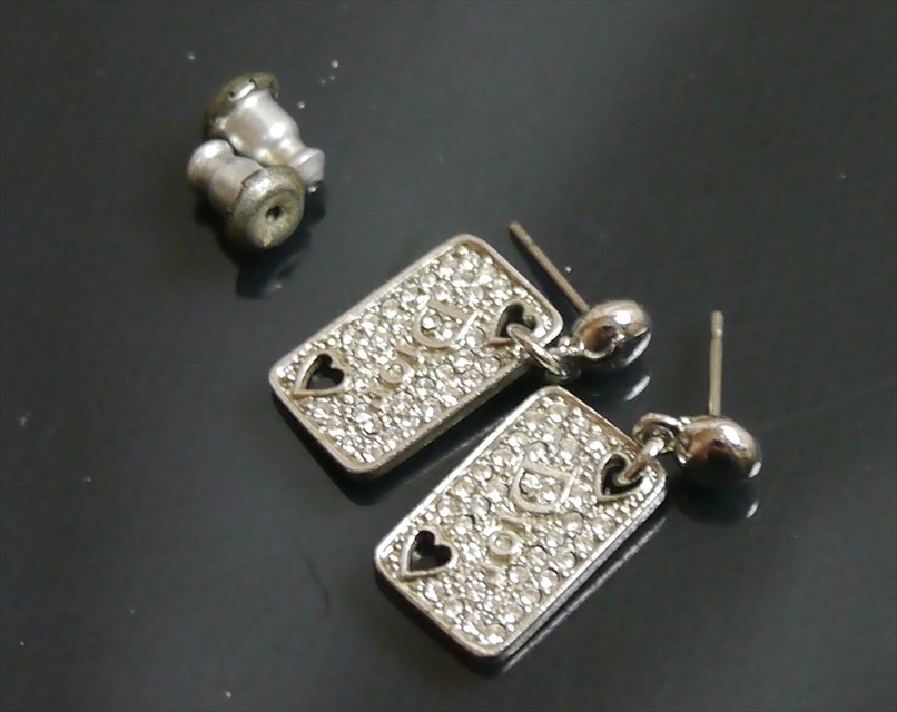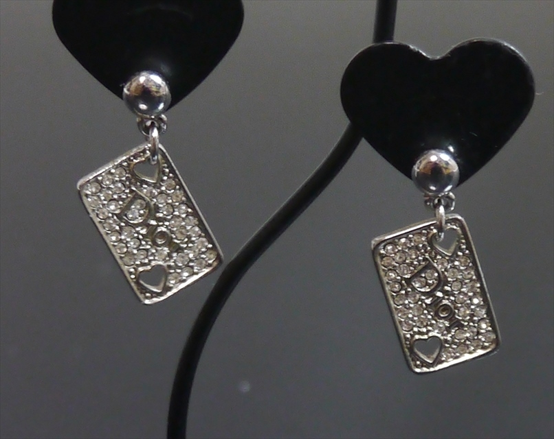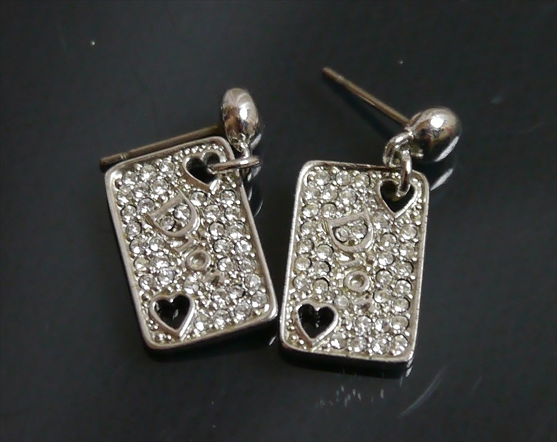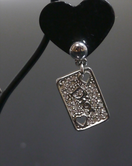 美品 ディオール ピアス トランプ ラインストーン ハート シルバー