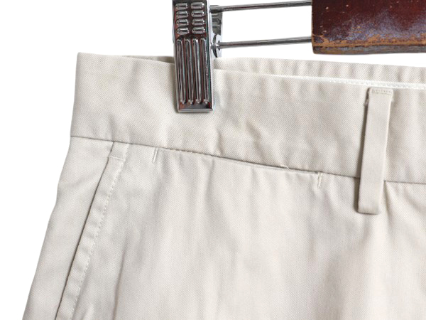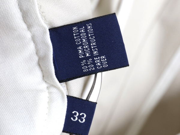 90年代のオールド 人気ブランド POLO GOLF RALPH LAUREN の ショートパンツ です。 POLO JEANS GOLF(ポロ ゴルフ)Polo by Ralph Laurenや POLO SPORTのサブライン、1994年に日本に初上陸しています。 素材は、80% PIMA COTTON 20% MICROMODAL MADE IN PERU ( ペルー製 ) ペルー製のピマコットンは、コットンのカシミアと呼ばれ 贅沢な繊維として世界中で珍重されています。 世界のコットン生産の5%にも満たない希少な繊維です。 シルクの様な肌触りと吸水性と発散性抜群で 吸汗速乾があり、夏でもさらりとして快適に過ごせる最高級素材。 MODALは、地球環境にやさしい製造工程で生産された 100%天然のセルローズ繊維、独特のドレープ感のあるレーヨン 洗濯が簡単で、シルクのような輝きと良好な吸水性をあわせもち 素肌感覚の柔らかな着心地抜群の素材です。 フロントは、ジッパーフライ ロゴ刻印入りE/Pジップ使用 両サイド、両バックにポケット 右ウエスト下にコインポケット付き 合わせやすい、ライト ベージュ ボディ ヴィンテージ U.S.ARMY のトラウザーをデザインソースに 現代的にバージョンアップさせた、 クラシカルなタックなしのゆったりとした綺麗なシルエット 高級素材をシンプルなデザインに落とし込んだ リアルヴィンテージのアーカイブを多数所有する ラルフローレンらしいしっかりと作りこまれた 使い勝手の良いシンプルなグッドデザイン 丁寧な仕立て、シルエットの美しさは言うまでもありません 程よいレングスで何にでも合わせやすく 様々なコーディネートに活躍する 着回しのきく、長く愛用できる商品です。 |