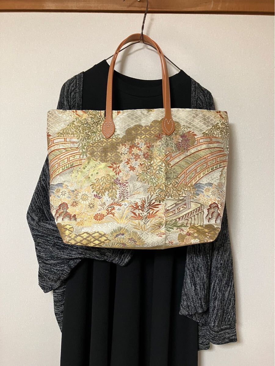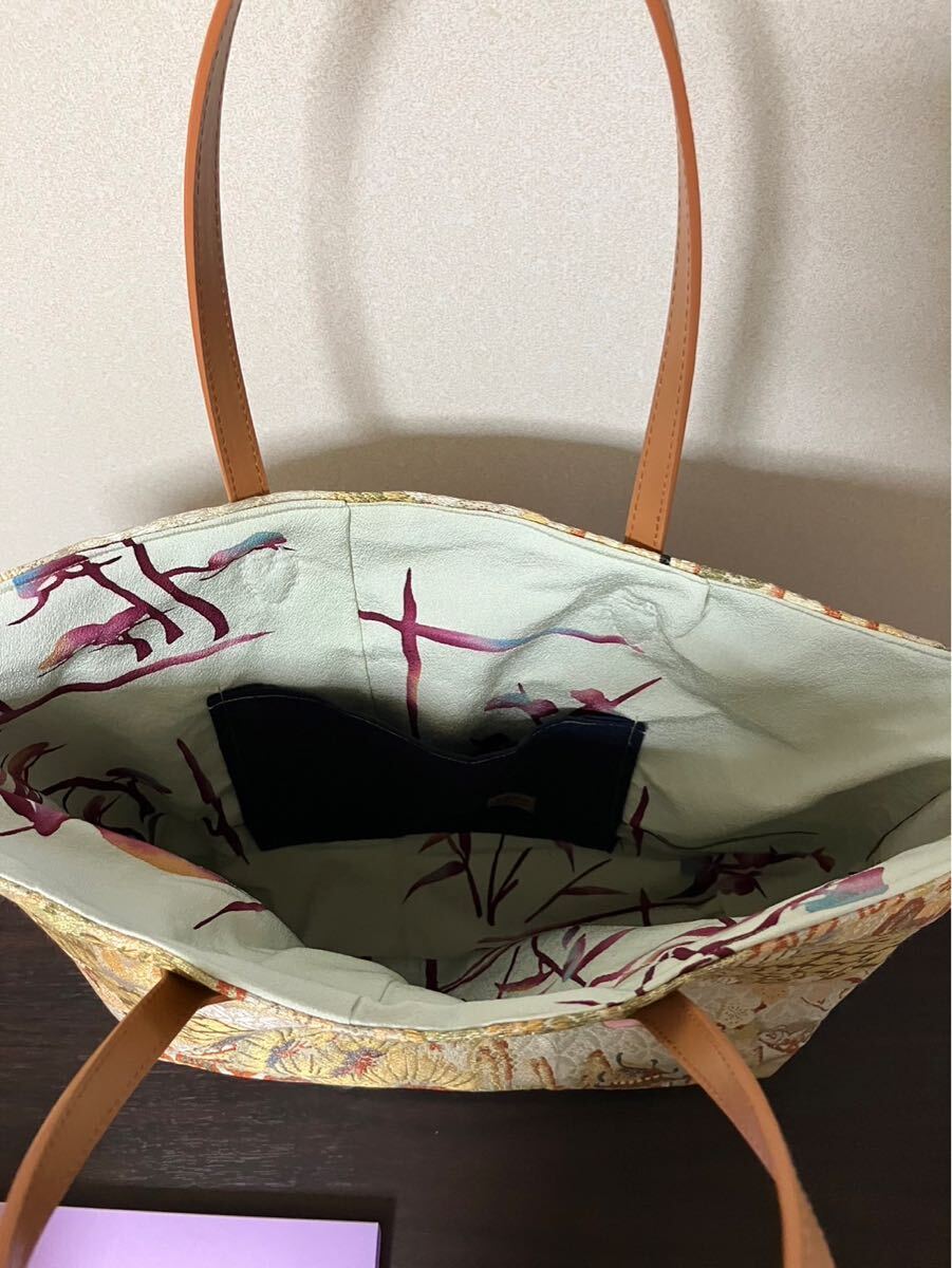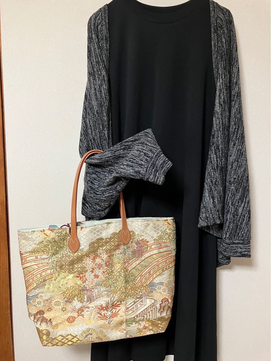 表地は着物の帯のリメイク 、裏地は着物のリメイクです。
