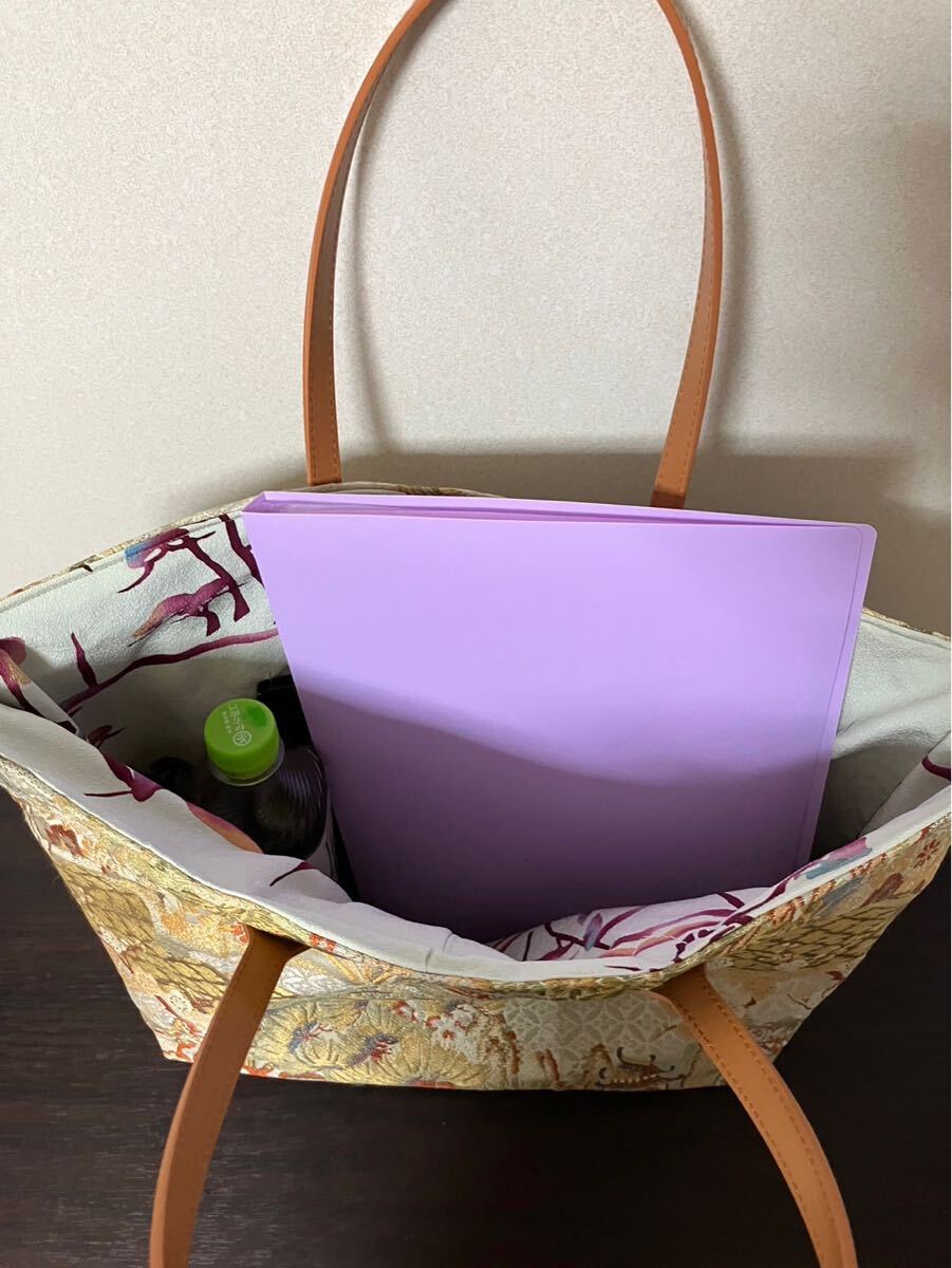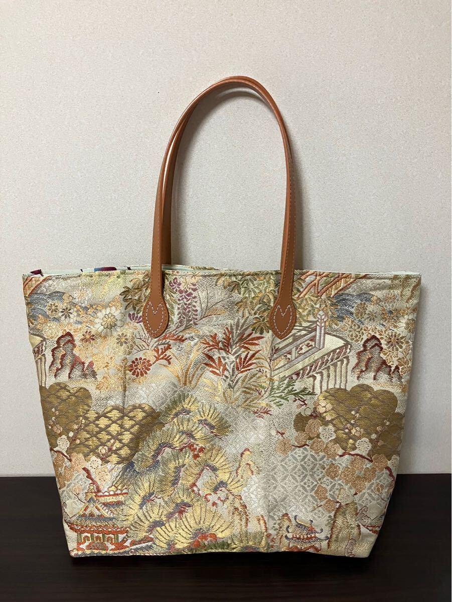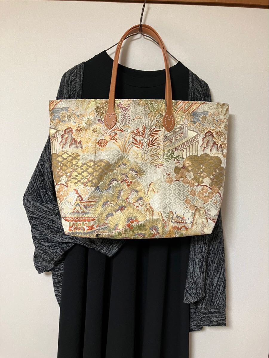 表地は着物の帯のリメイク 、裏地は着物のリメイクです。