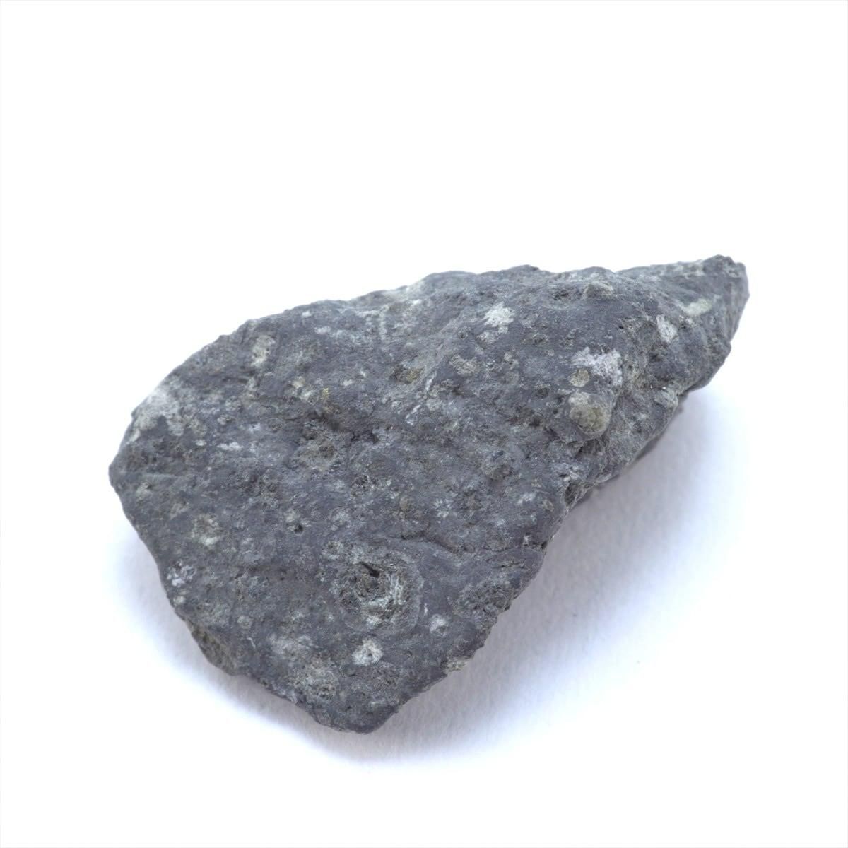 CVは炭素質(Carbonaceous)のCと分類時のプロトタイプであるヴィガラノ隕石(Vigarano)のVから来ています。構造も組成も普通コンドライトに最も近く、結晶構造に水をあまり含まないため頑丈で風雨にさらされても分解されにくいです。CVの最大の特徴は暗い灰色のマトリックスの中にある不規則な形の白い大きな包有物[CAI](高カルシウムアルミニウム含有物と珪酸塩鉱物の混合物)の存在です。