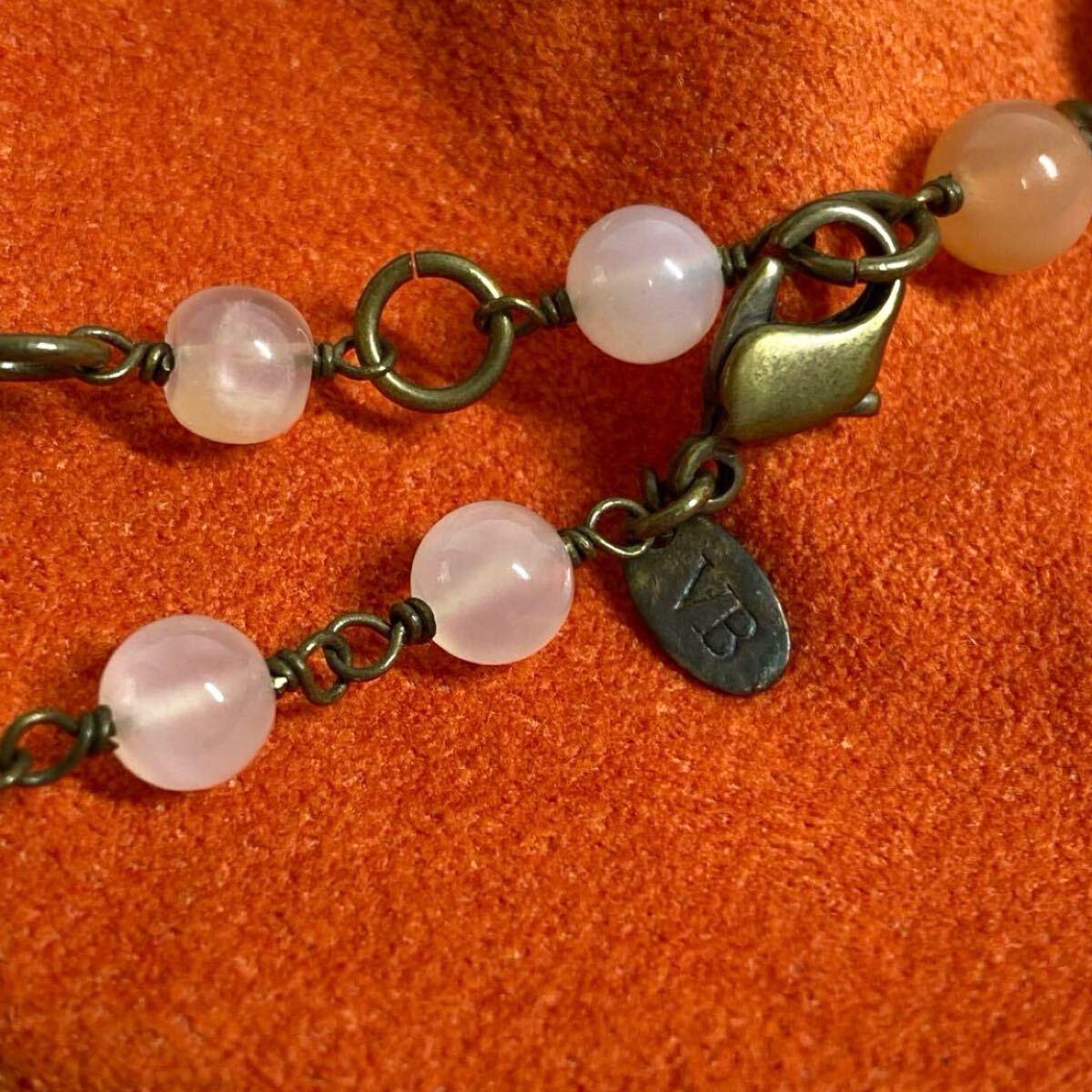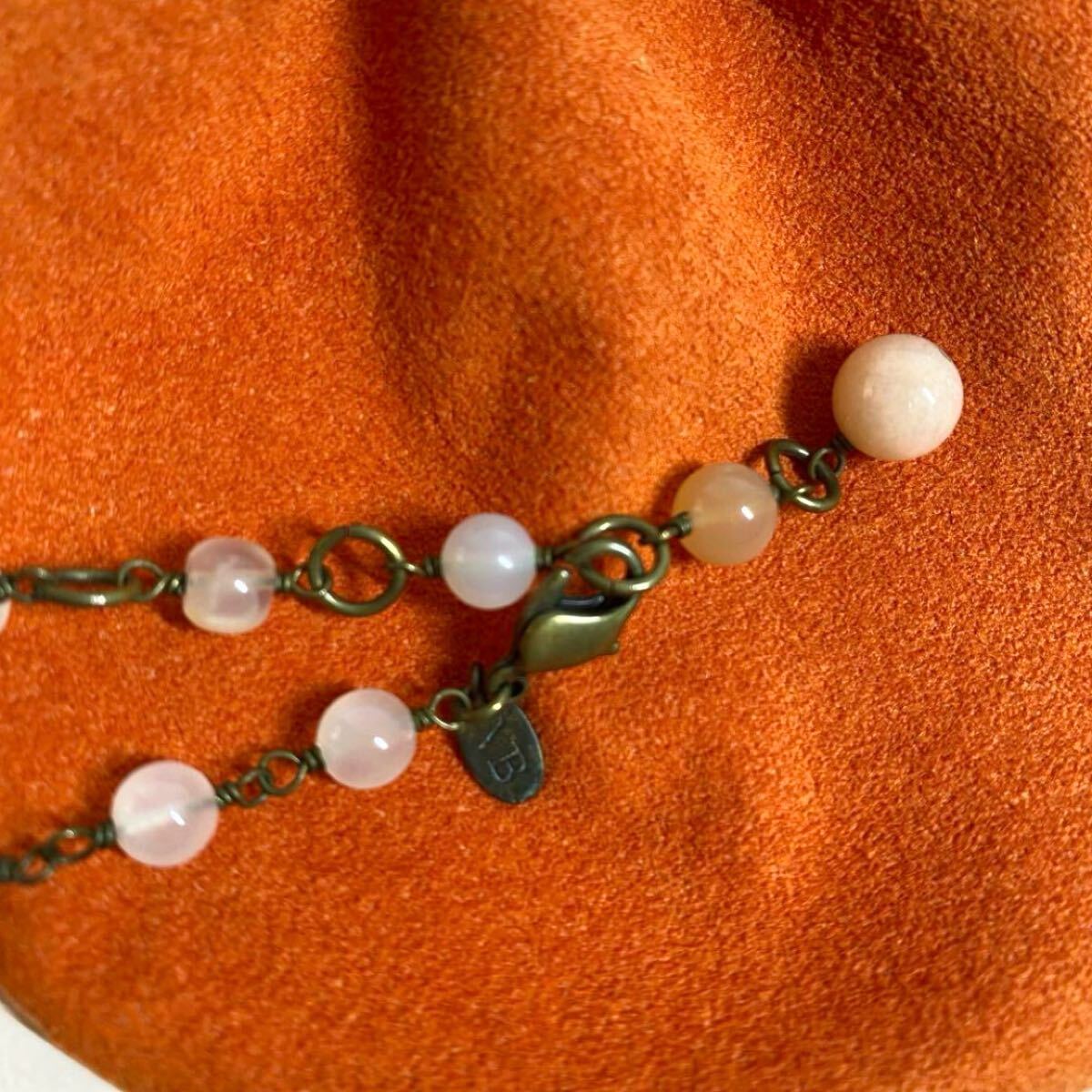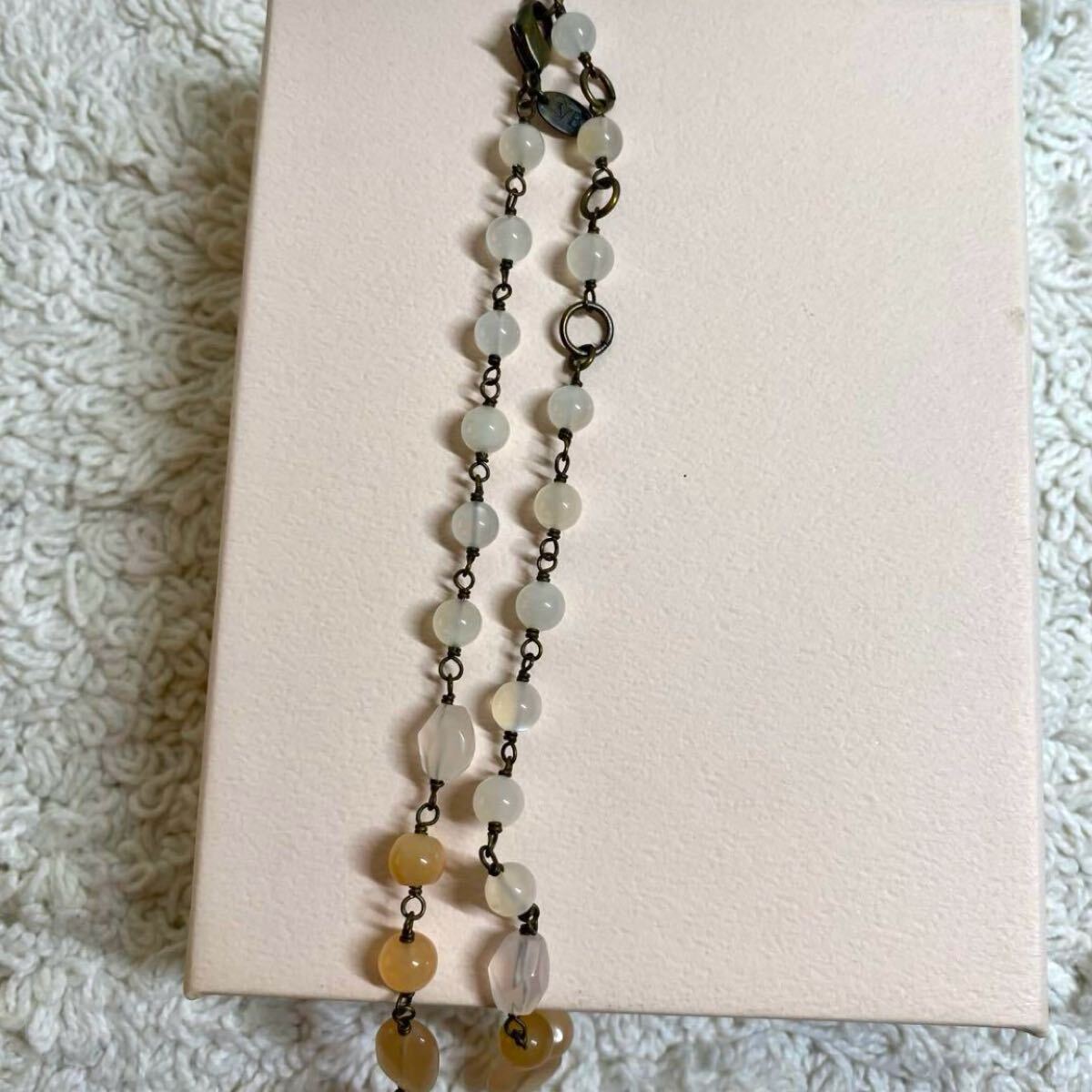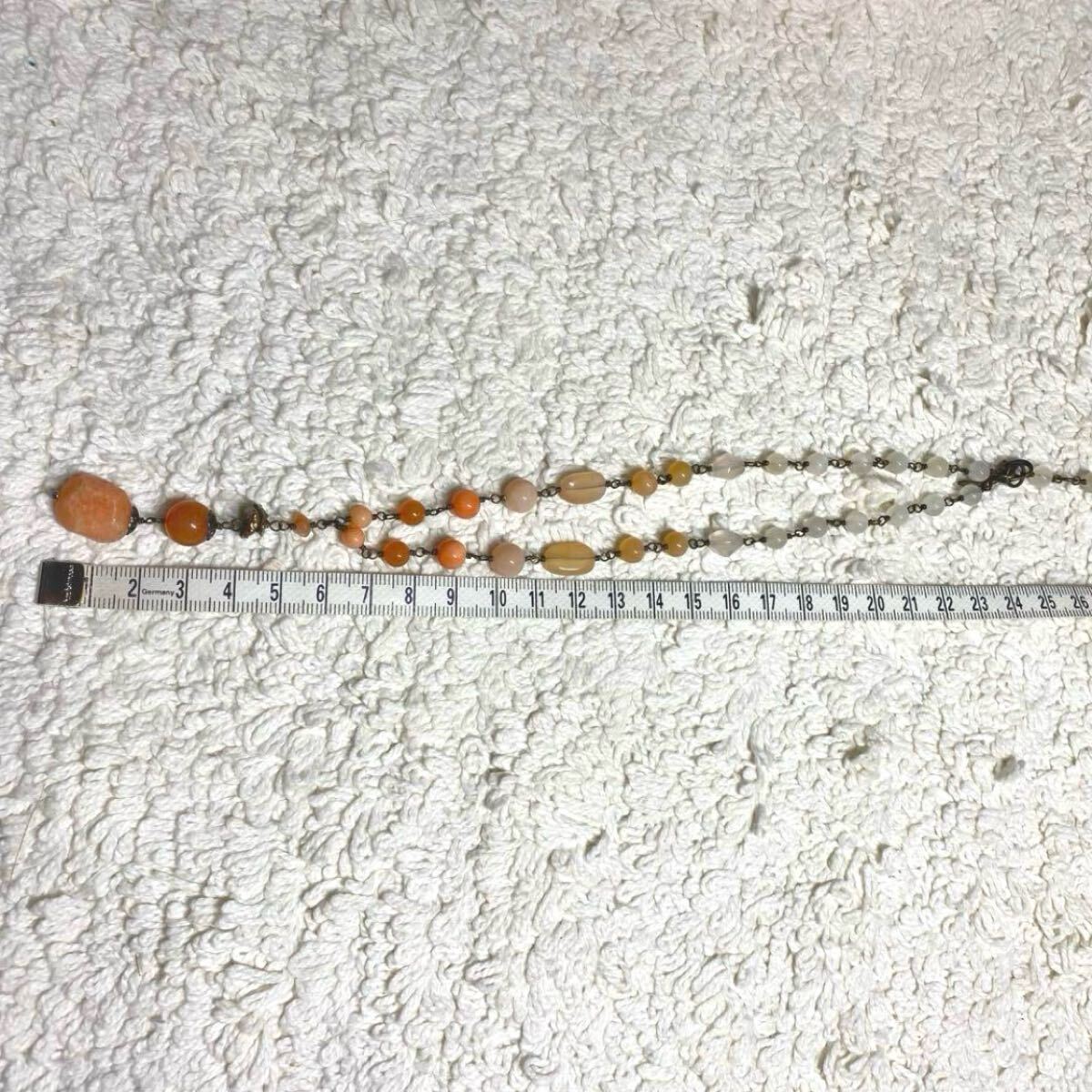 天然石を使用した薄いオレンジ系のネックレス、オリジナルポーチと箱付き。