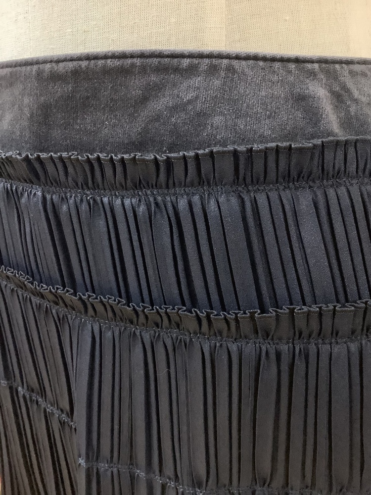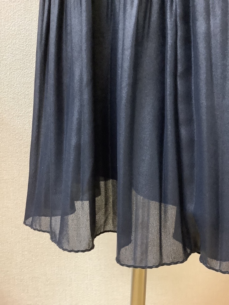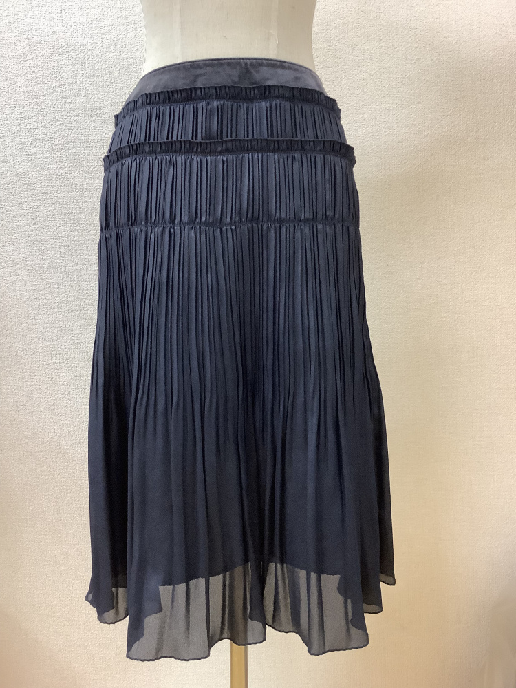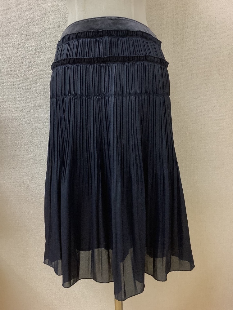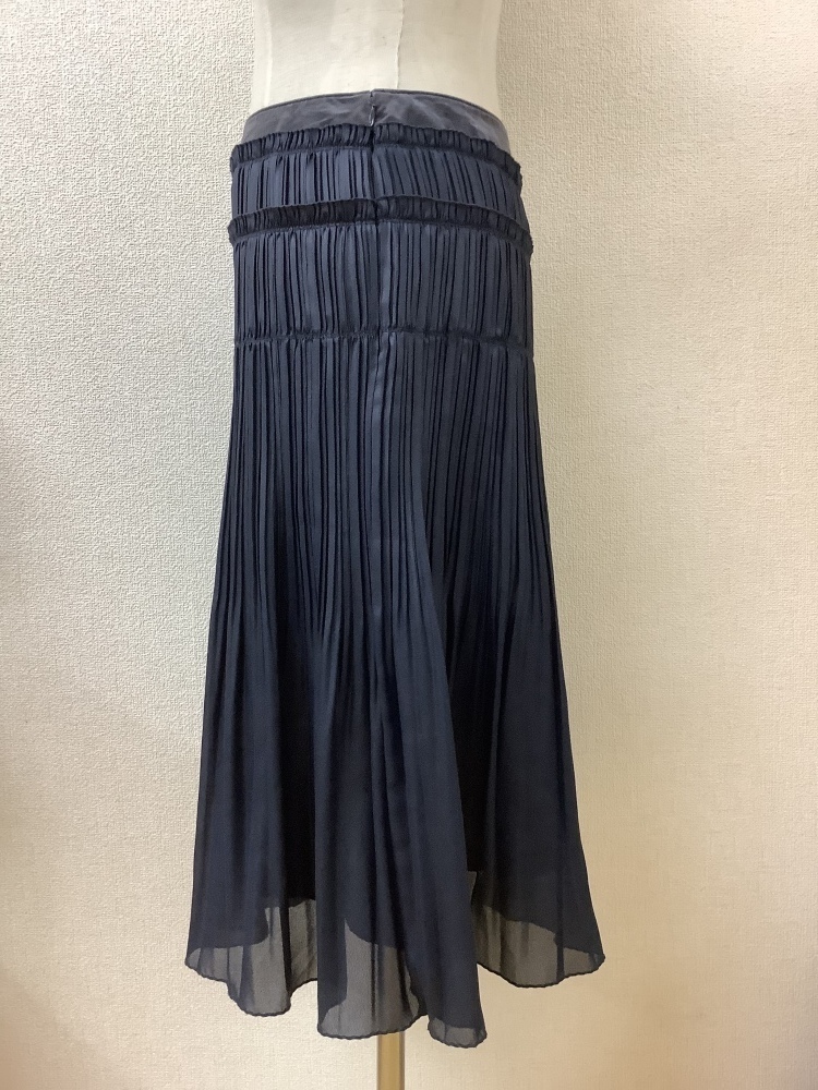 | 管理番号:10^130587 K.T. ネイビー プリーツフレアスカート やや光沢 表示サイズ:9 実寸(参考)