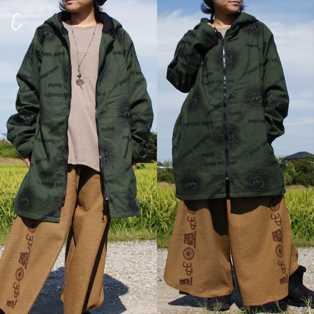 ★エスニック ジップアップ フ―ディー ジャケット 送料込★新品未使用C★アジアン ビックシルエット 大きめ ロングジャケット