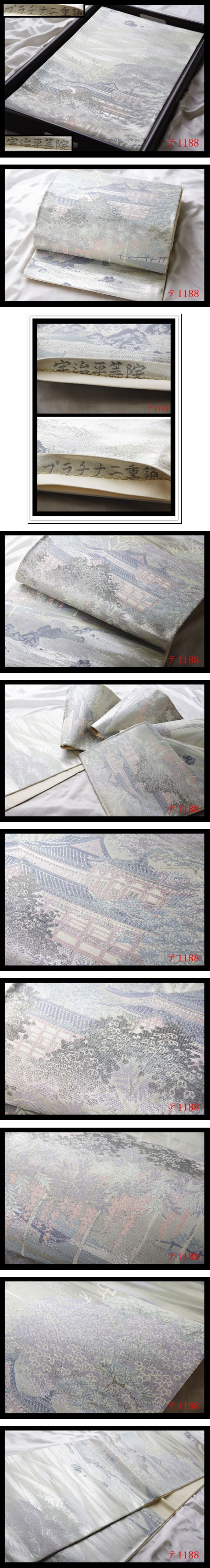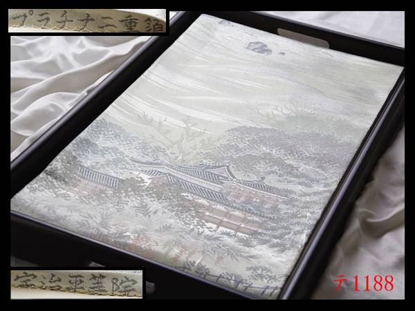 蔵【テ1188】西陣美品 プラチナ二重箔 宇治平等院 気品豊かに 正絹六通高級美術袋帯 新品同様 ◇検◇簪着物名古屋帯和装小物帯締め