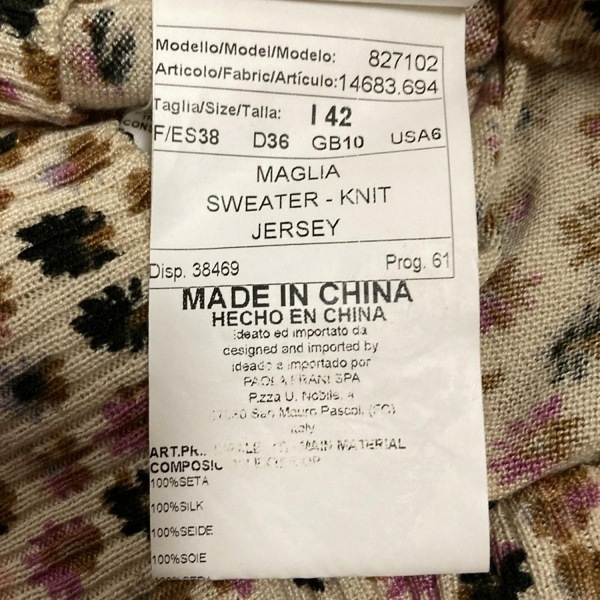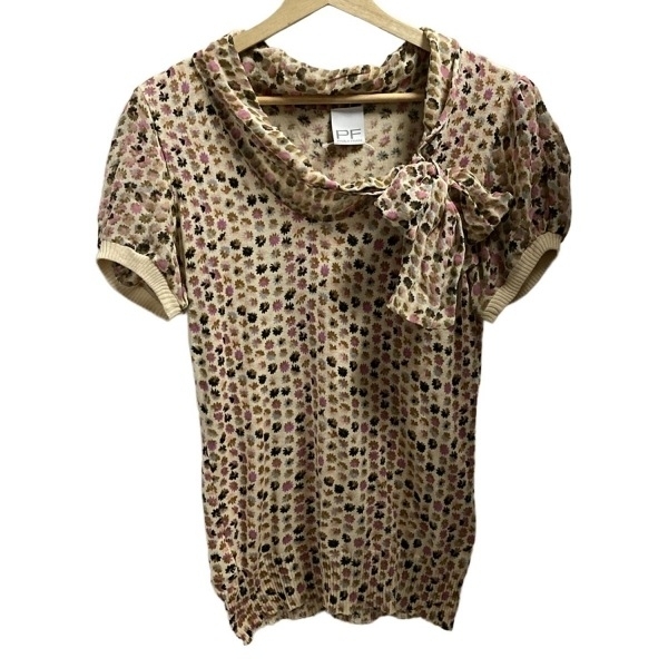 パオラ フラーニ PAOLA FRANI 半袖セーター/ニット サイズ42 M - ベージュ×ライトパープル×マルチ レディース シルク/袖シースルー/花柄