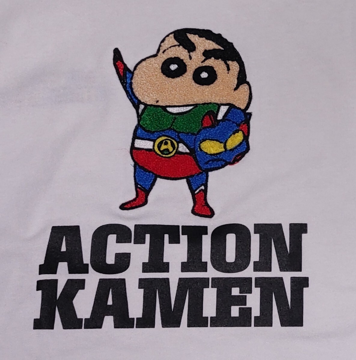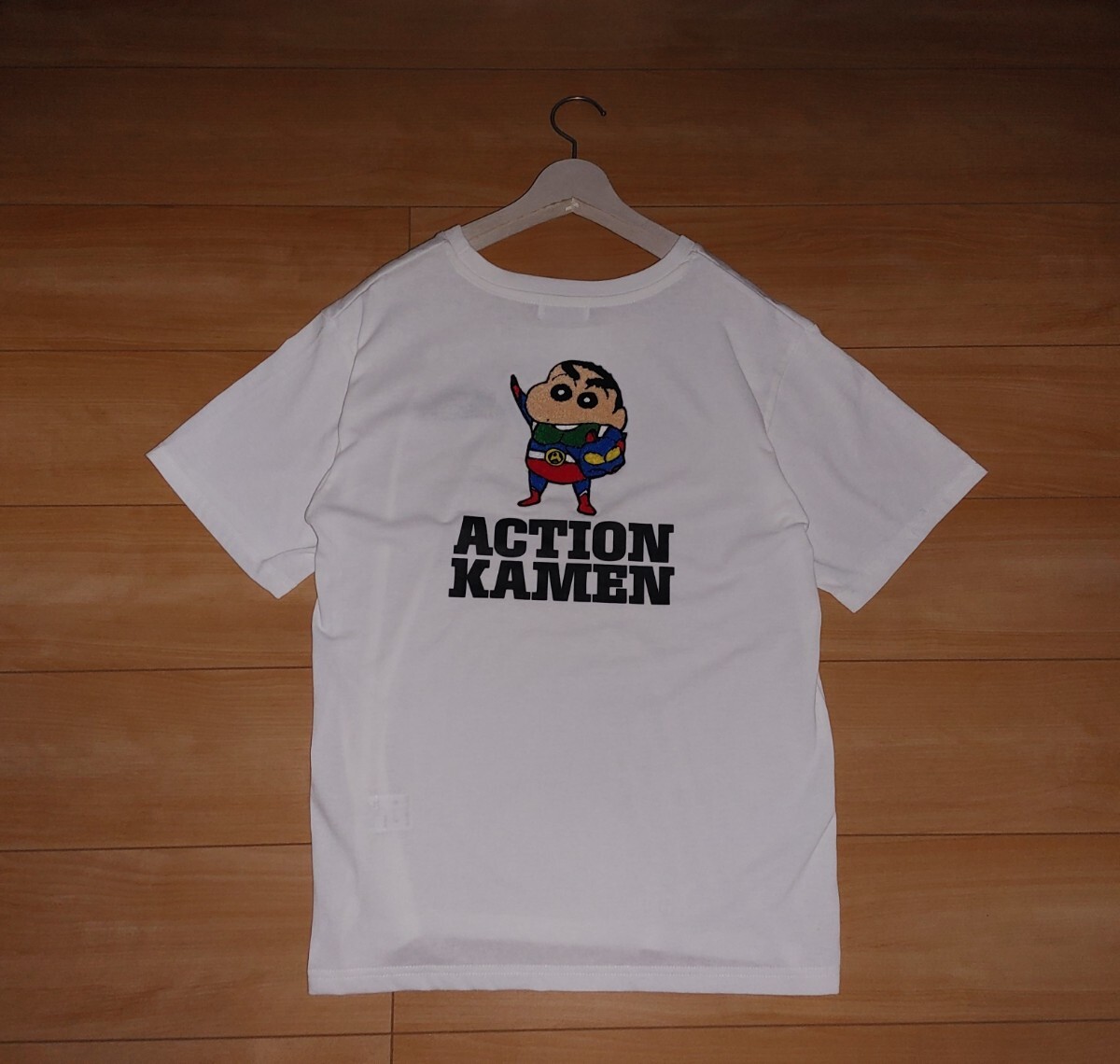 ◆新品◆クレヨンしんちゃん CRAYON SHINCHAN◆半袖 Tシャツ◆しんのすけ◆アクション仮面◆サガラ 刺繍 プリント◆トップス 白 ホワイト L
