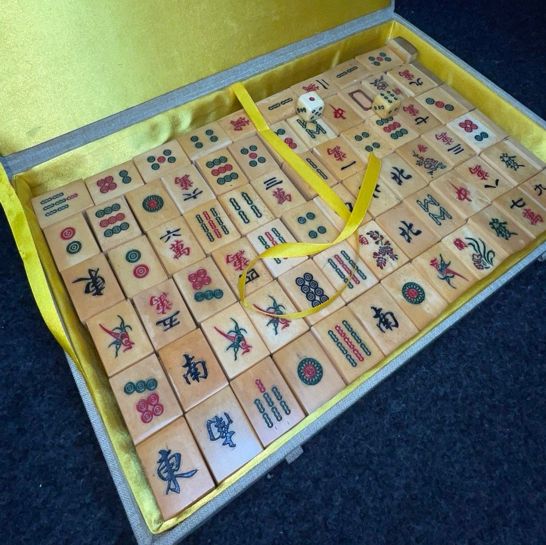 唐物 清 牛骨 麻將 極細工 古美術品 中国古玩 骨董品 D67