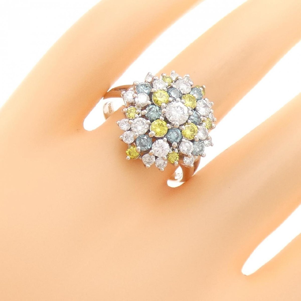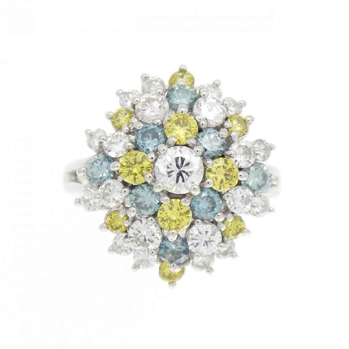 3色のダイヤモンドをあしらったリング。指元に彩りを添える華やかなジュエリーです。