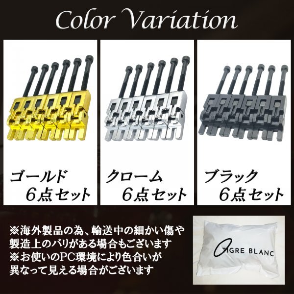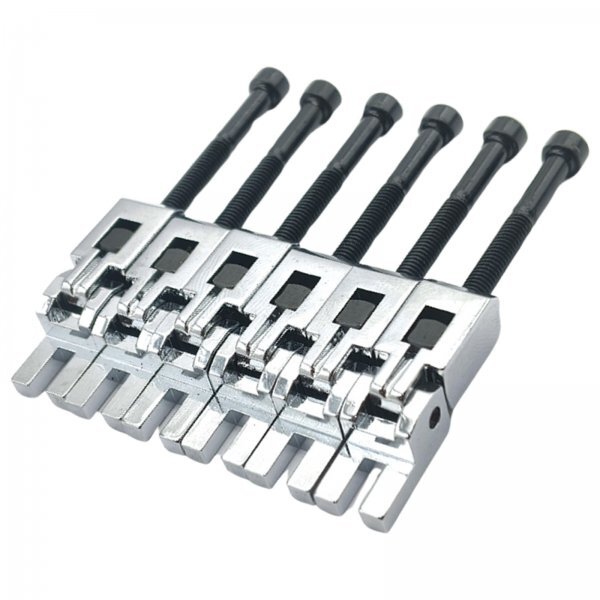 フロイドローズトレモロブリッジ用の高品質交換用サドル6個セット(1弦~6弦用)になります。エレキギターの音色を向上させ、弦切れを防ぎます。