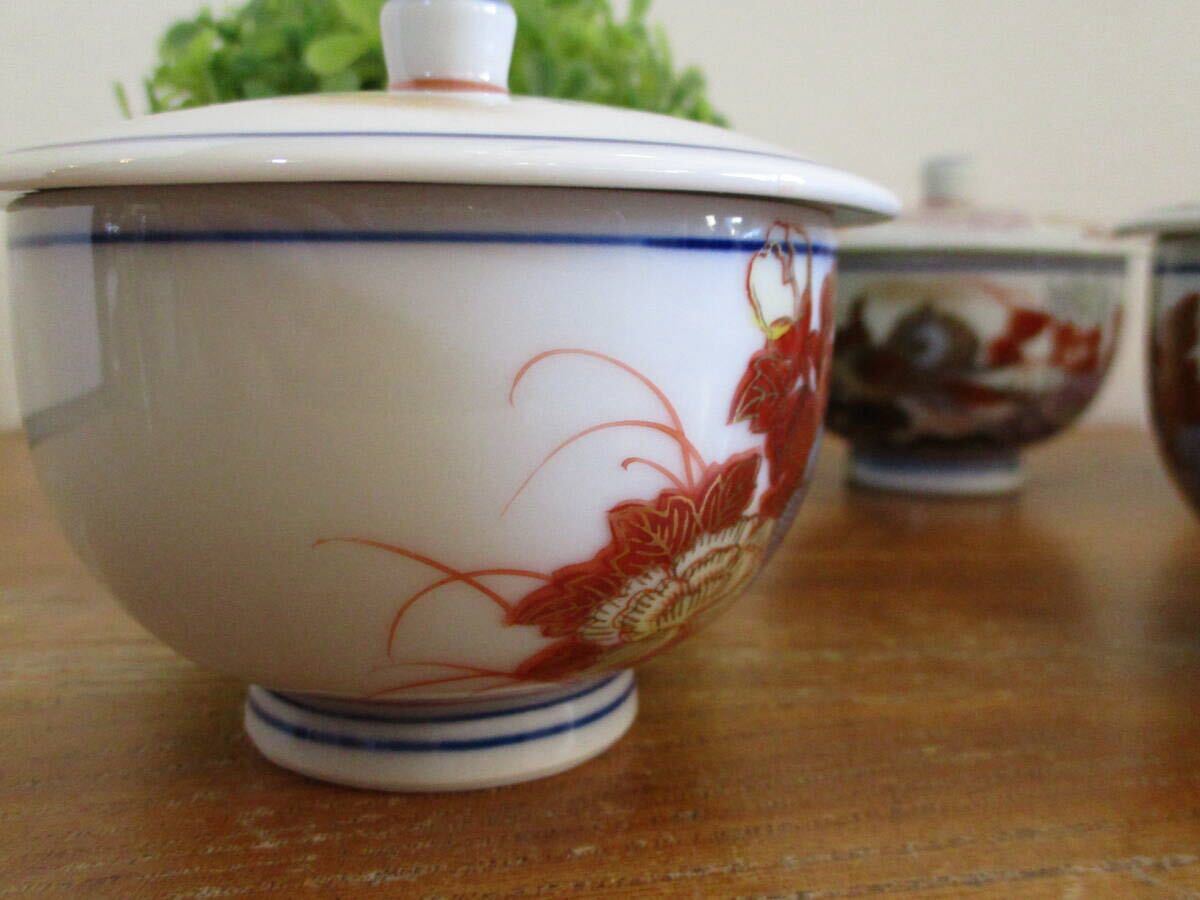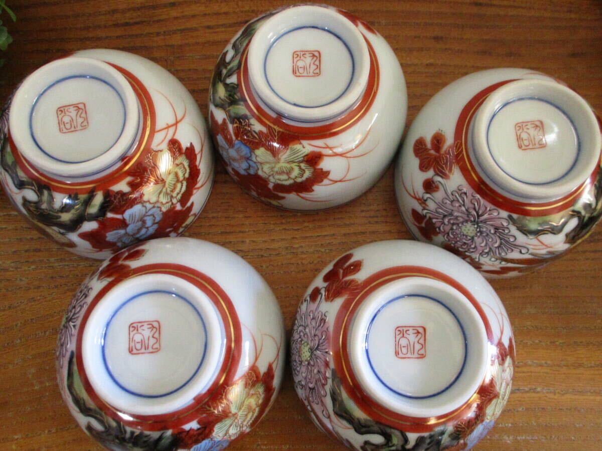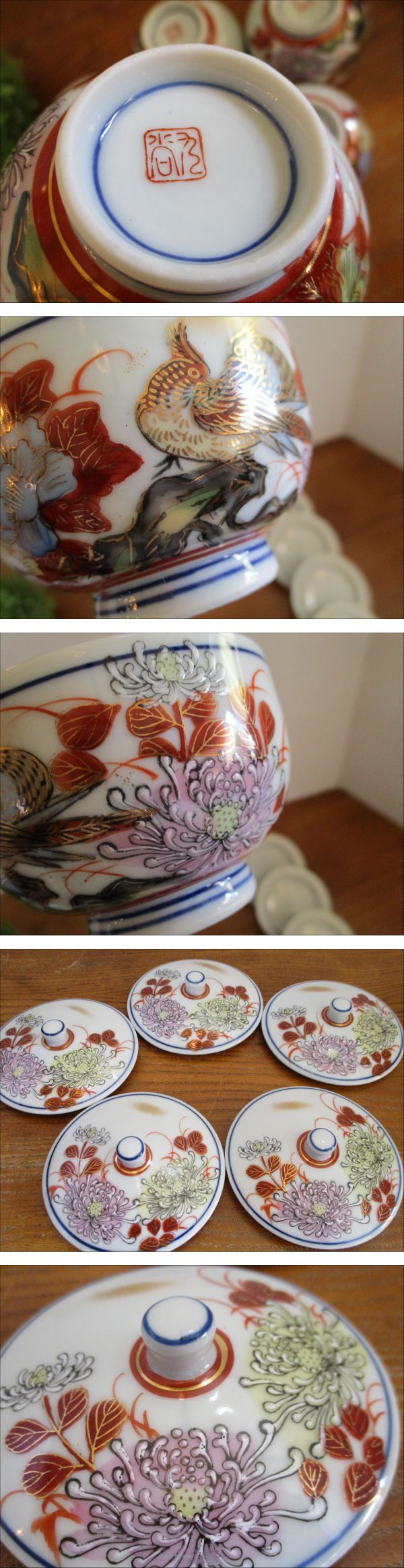 【美品】九谷 陶器 蓋付 金彩 花鳥紋 色絵湯呑茶碗5客セット ふた付 和食器 茶わん蒸し 茶器 湯呑 湯飲み 茶碗 前菜 料亭風 九谷焼 レア 希少 | |||