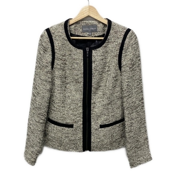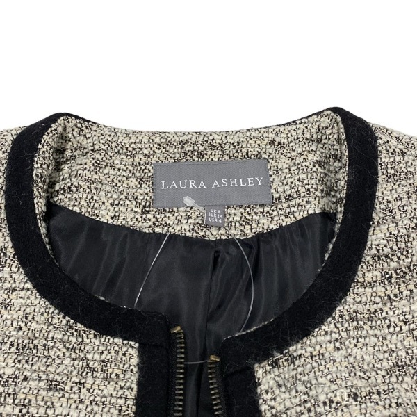 ローラアシュレイ LAURAASHLEY サイズ8 M - アイボリー×黒 レディース 長袖/ジップアップ/秋/冬 ジャケット