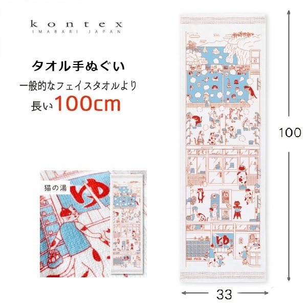 kontex コンテックス タオル手ぬぐい 布ごよみ 猫の湯 62180 てぬぐい タオル 吸水 速乾