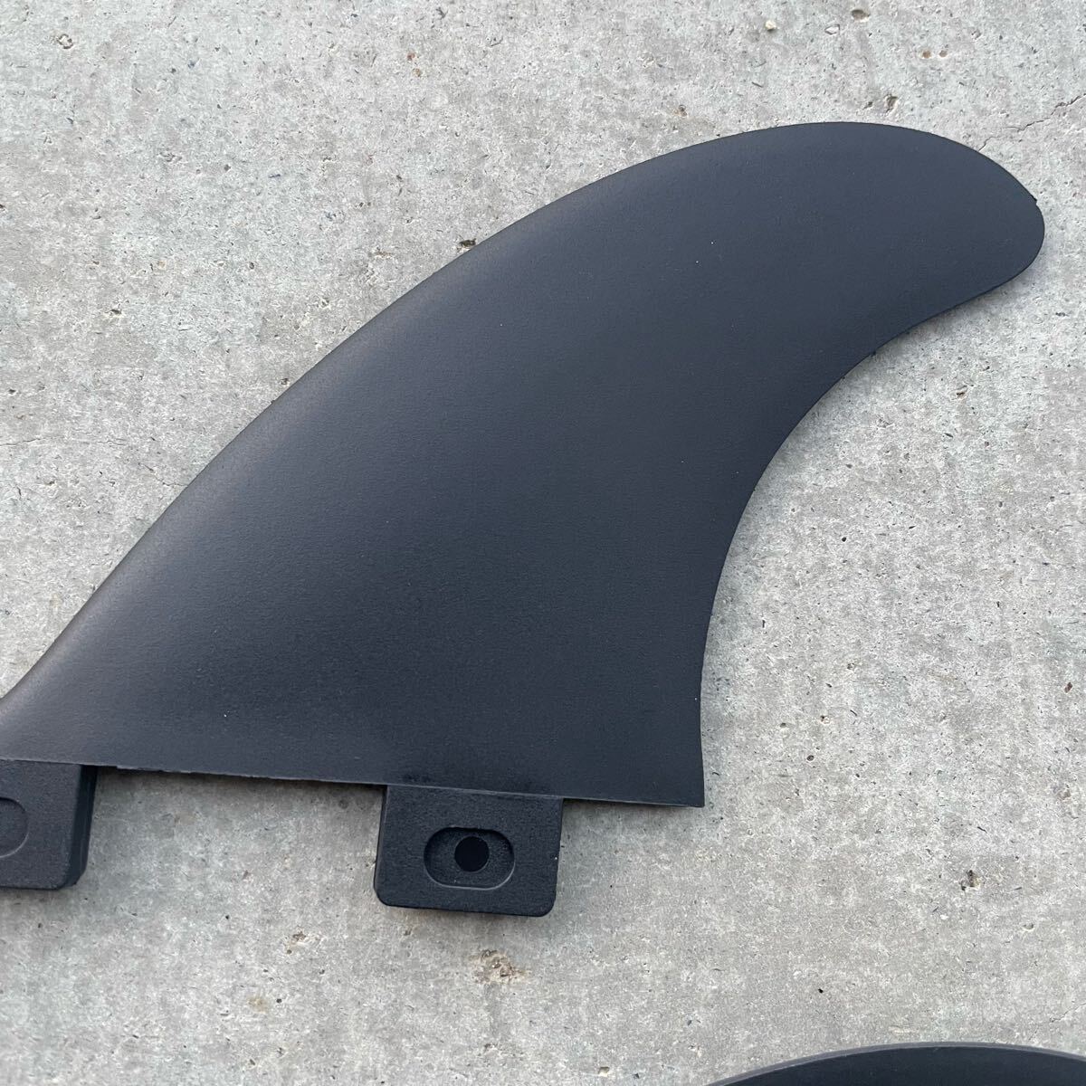 大きめのサイドフィンとメリハリある小さめなセンターフィンが、ツインのスピード感と、トライフィンの取回しを実現!