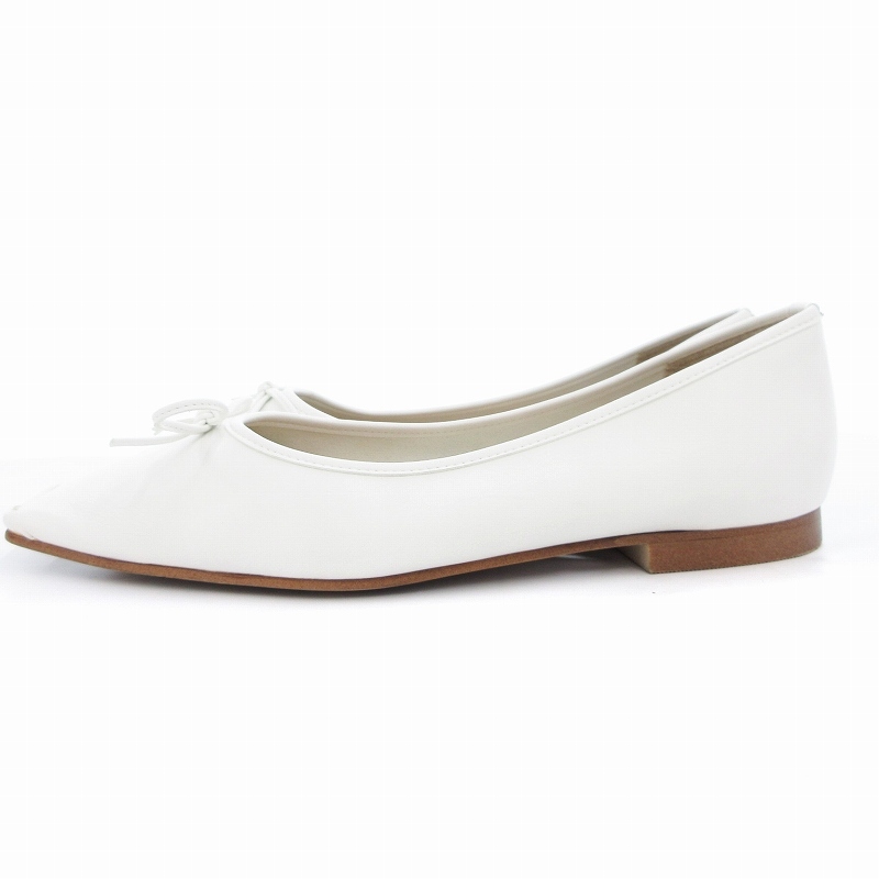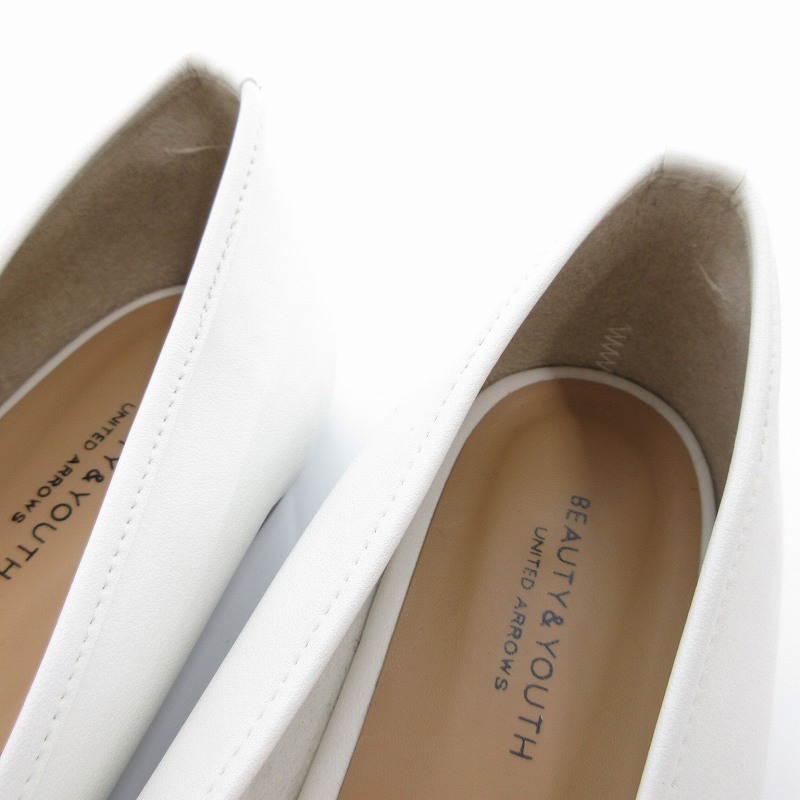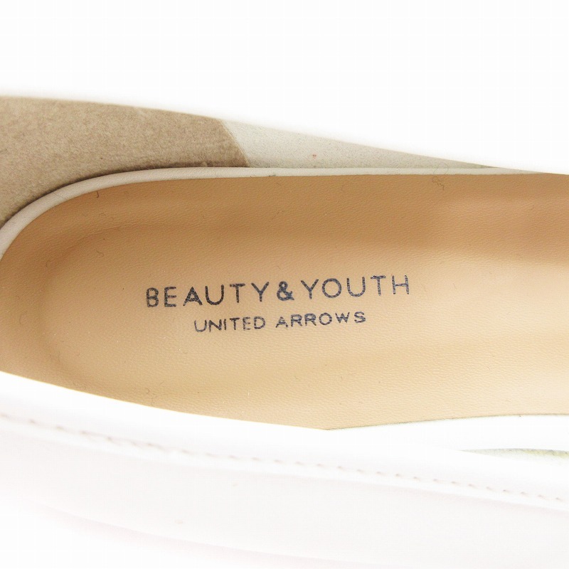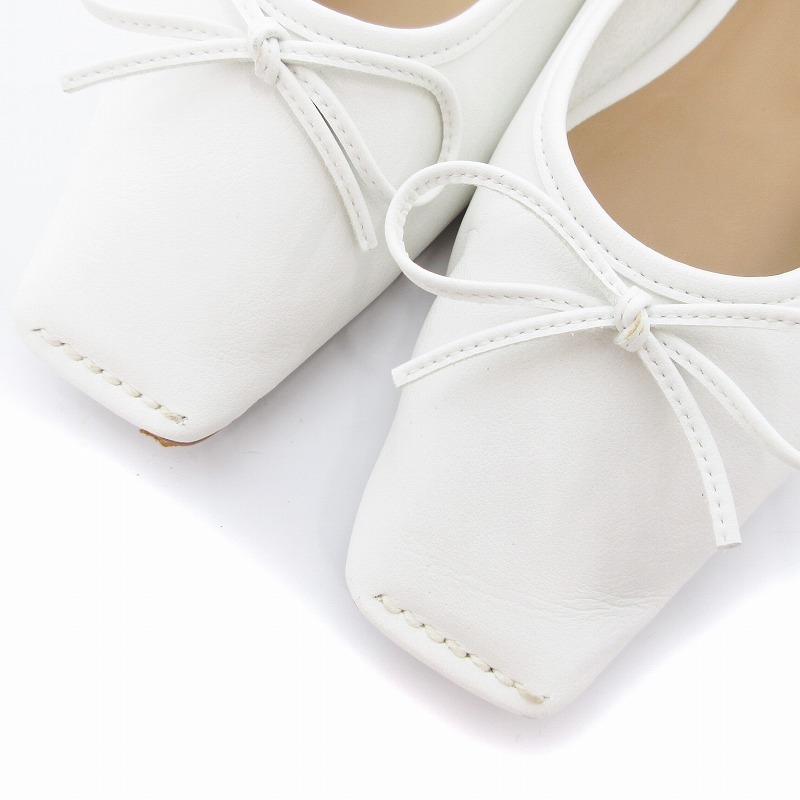 ユナイテッドアローズ ビューティー&ユース バレエシューズ フラット スクエアトゥ ローヒール リボンモチーフ 36.5 白 ホワイト