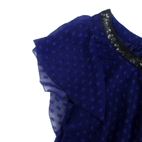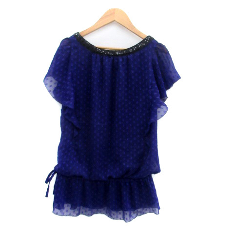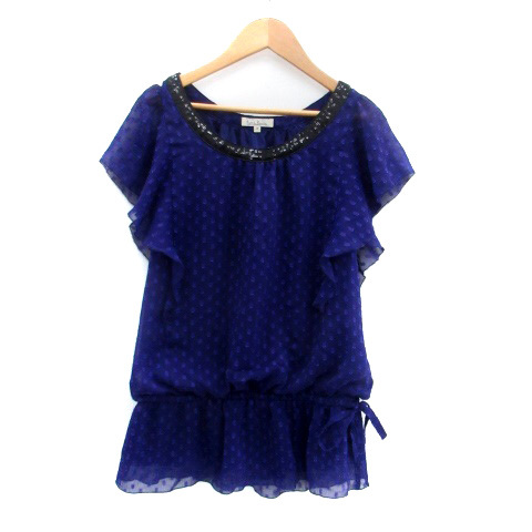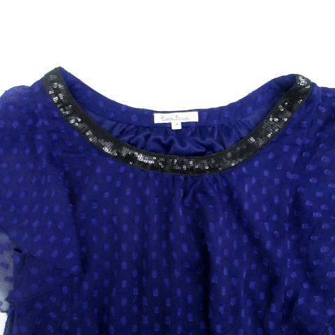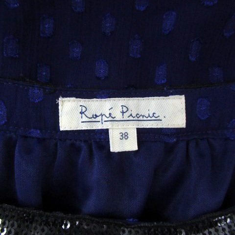 ロペピクニック ROPE Picnic ブラウス カットソー ラウンドネック 半袖 ドット柄 スパンコール 38 M 紺 ネイビー /HO44 レディース