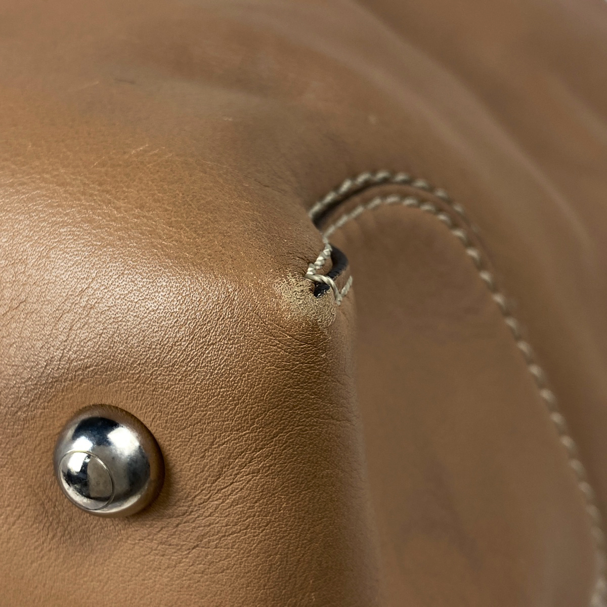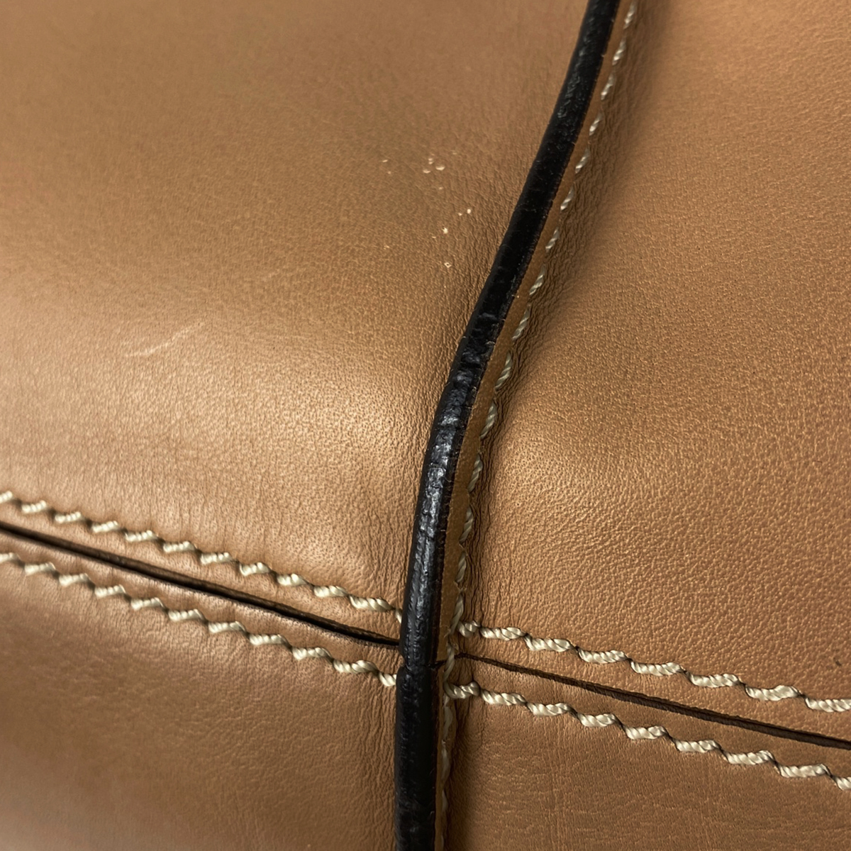 | 《全体》型崩れ、スレ、キズ、シワ、汚れ 《内側》浮き、色ムラ 《ショルダーストラップ》へたれ 《金具》小キズ 《レザーのフチ》押し跡、僅かなひび割れ 保存袋に劣化あり。 |