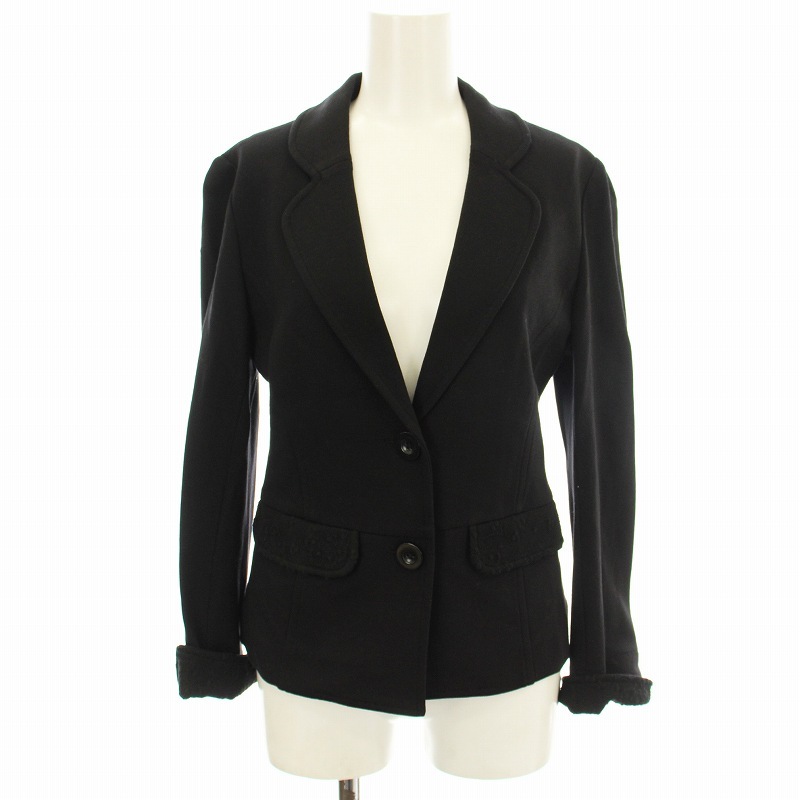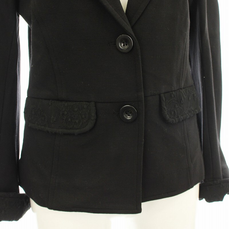 ローラアシュレイ LAURA ASHLEY テーラードジャケット JKJ409J12 花柄レース スウェット素材 7 黒 ブラック