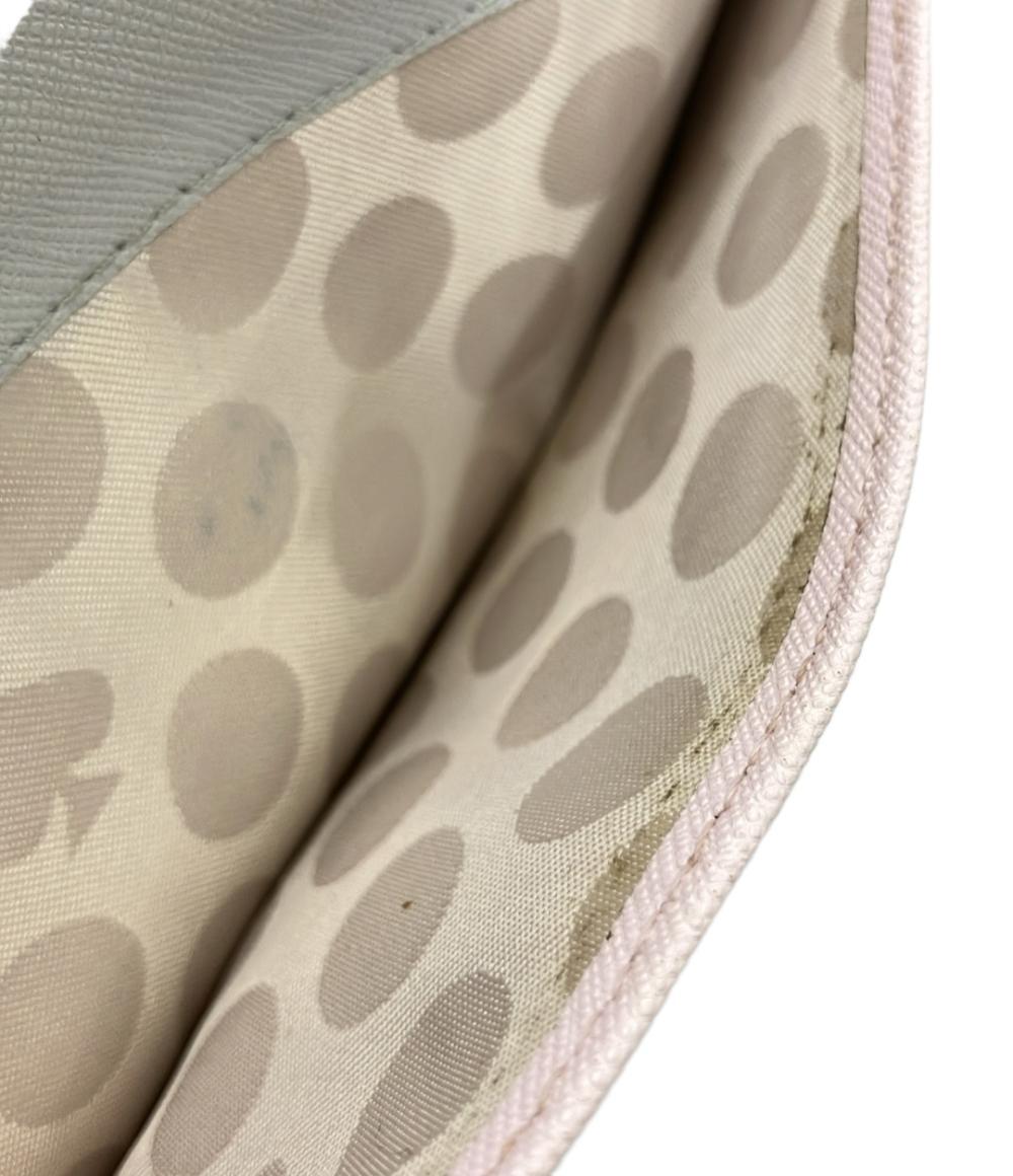 表面、背面、内面、小銭入れ内に汚れあり 角、縁にスレ、剥がれあり 金具パーツに剥げあり |