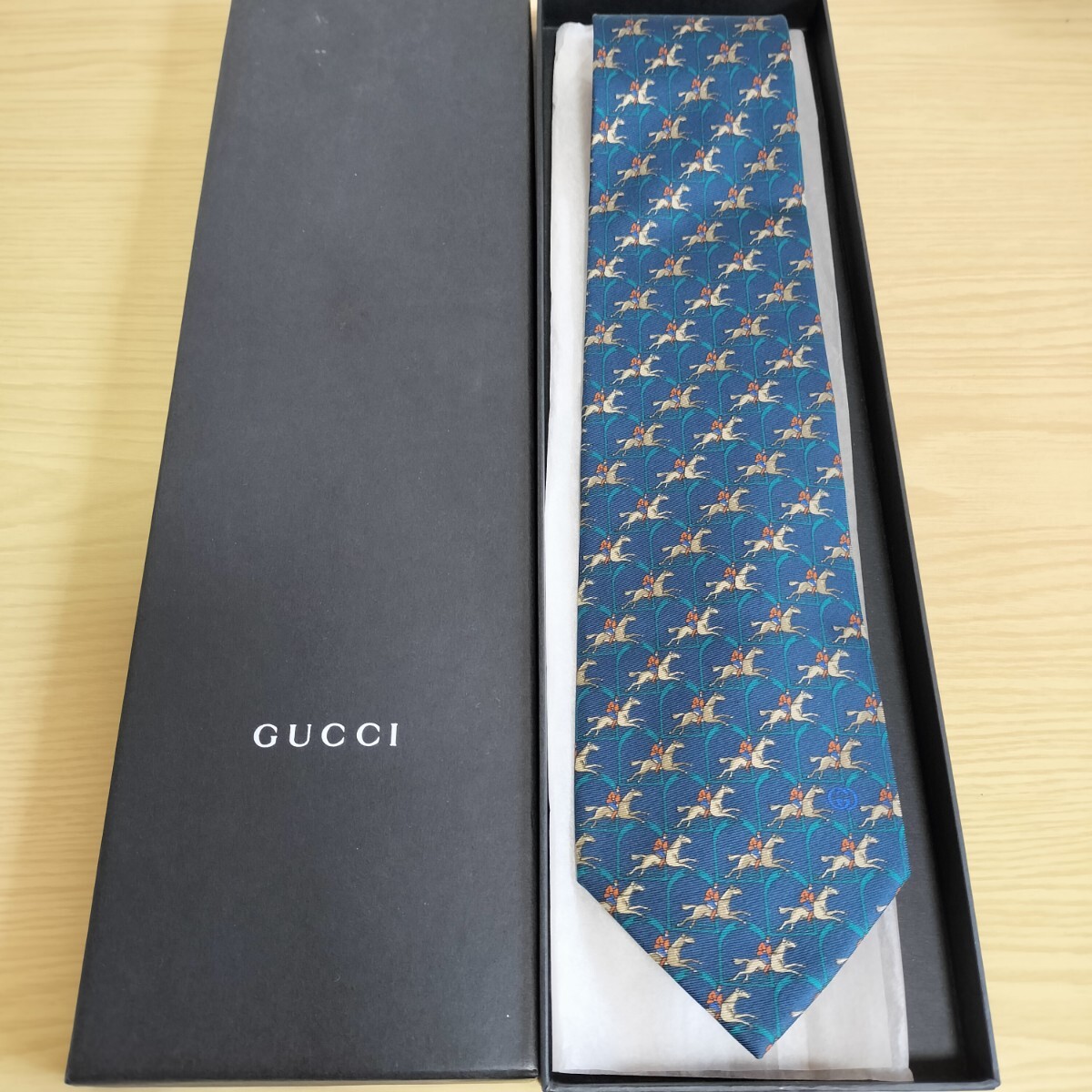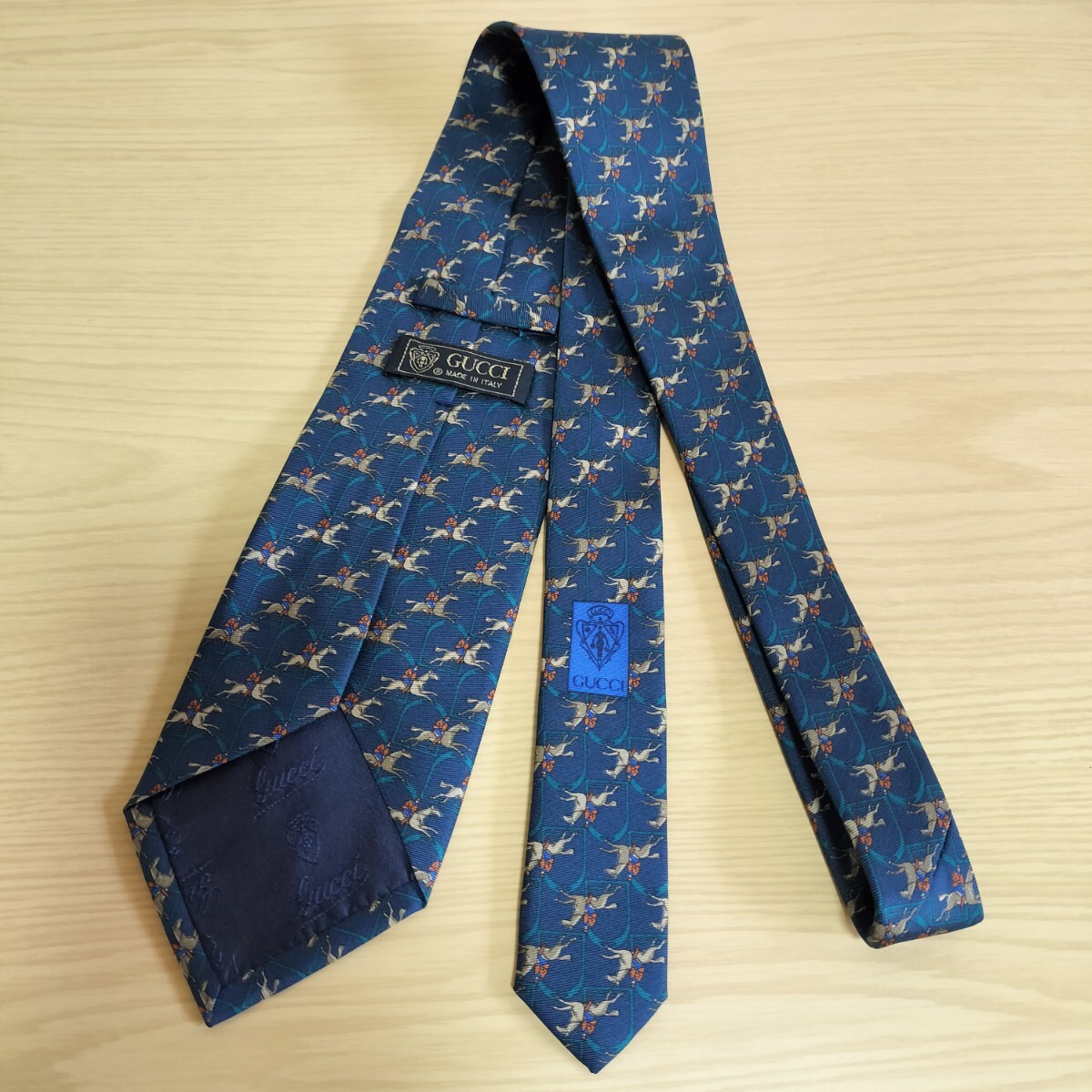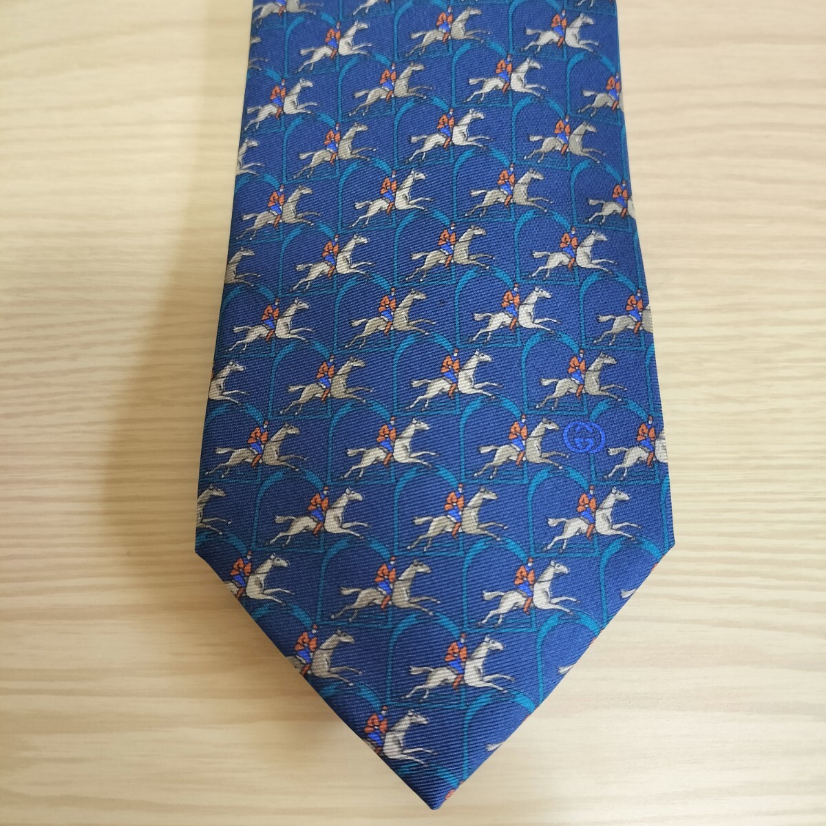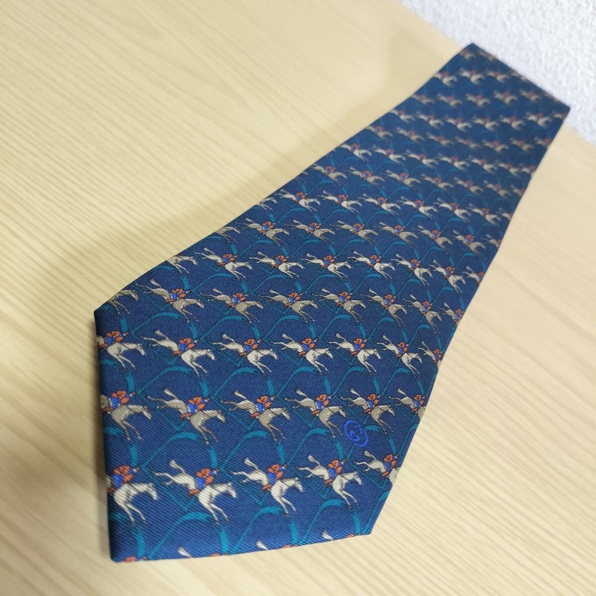 紺色馬鈴掛けるGGロゴ模様ネクタイ