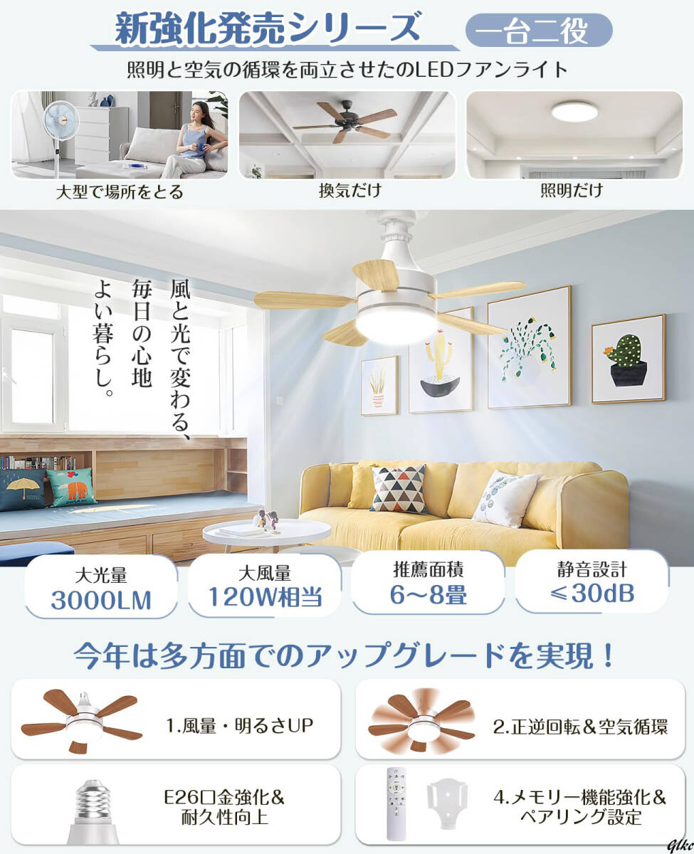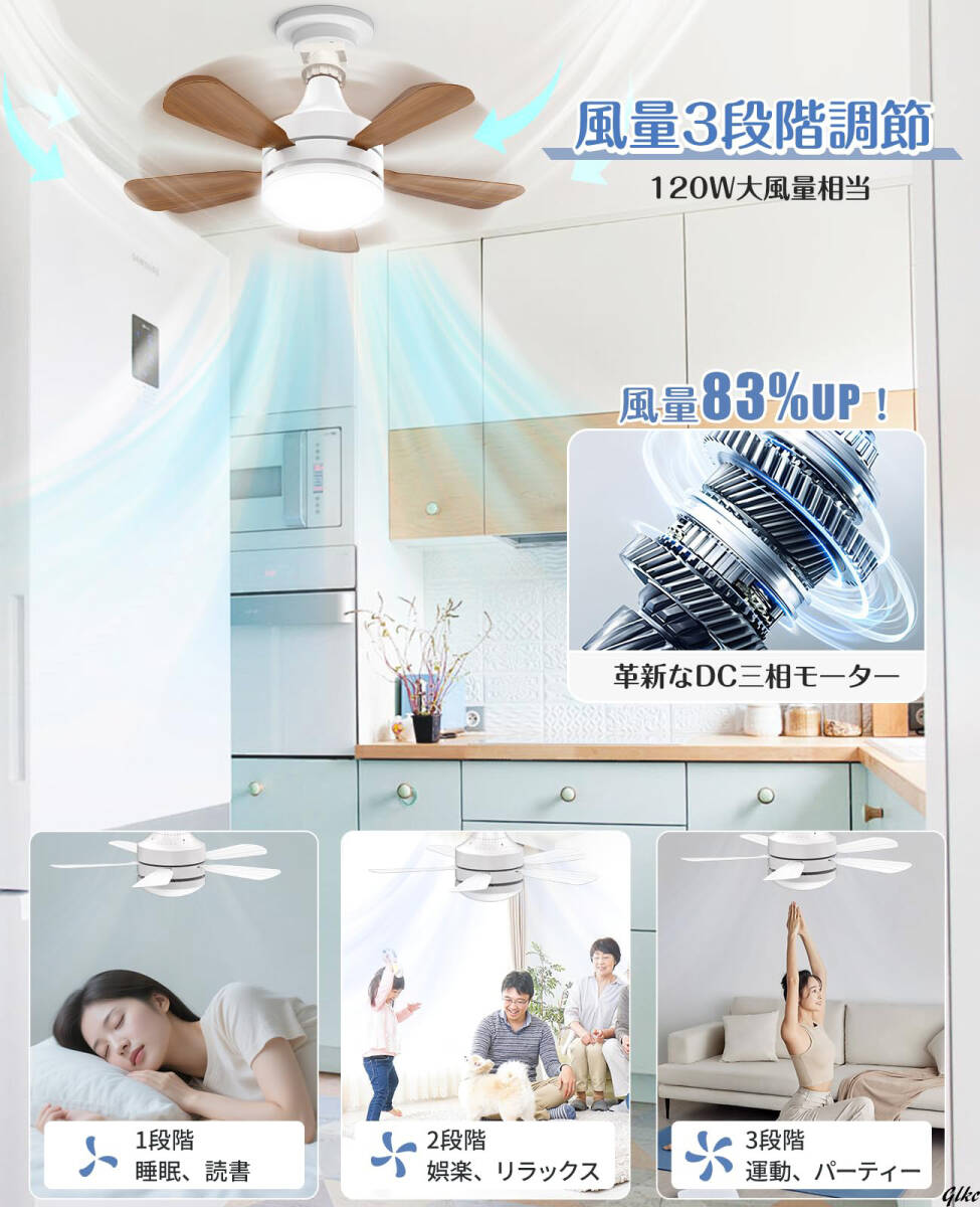 【夏は涼風、冬は暖房効率を高める正逆回転機能付き】 シーリングファンライト 小型DCモーター 静音省エネ おしゃれ 照明 寝室 ホワイト