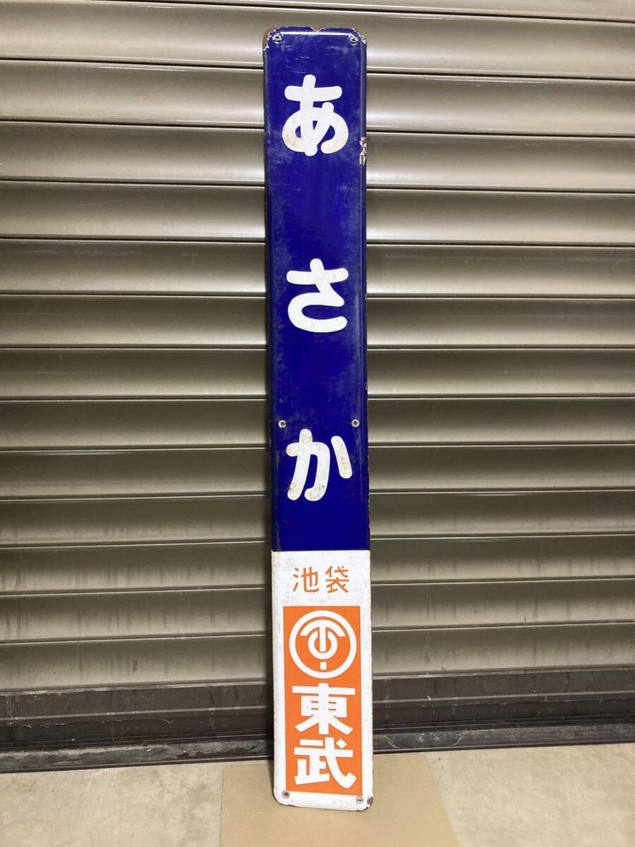 ◆東武鉄道 あさか駅 朝霞駅 駅名板 ホーロー 鉄道部品 鉄道廃品◆KH
