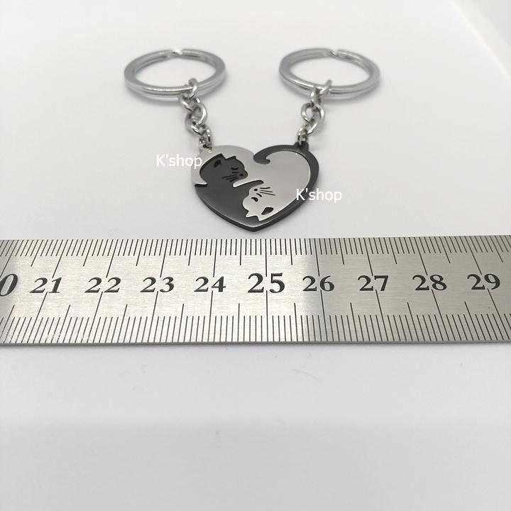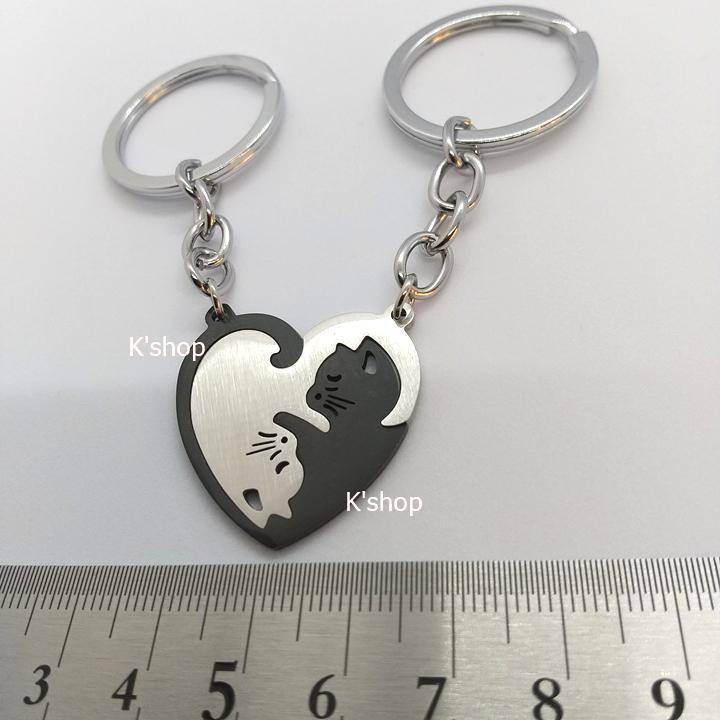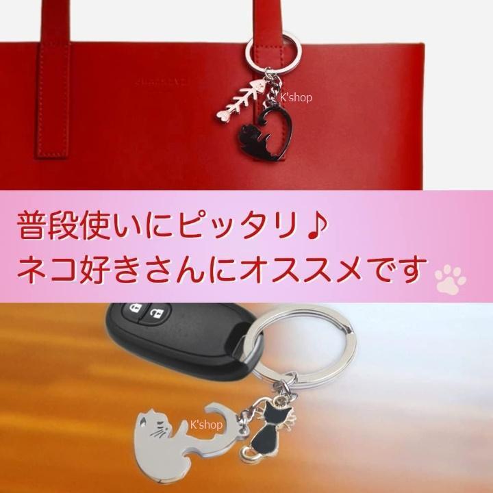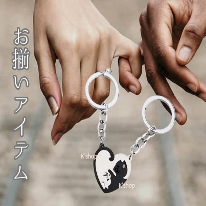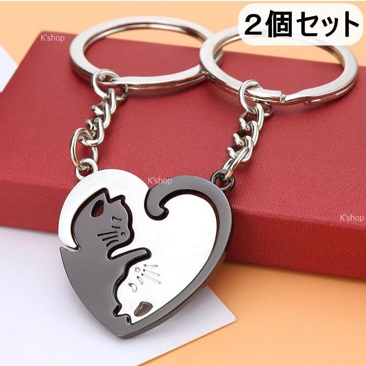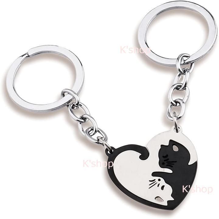 ● 猫 キーホルダー おしゃれ ペア カップル キーリング ネコちゃん ハート型 ペアキーホルダー ステンレス 黒 シルバー かわいい 猫グッツ ●