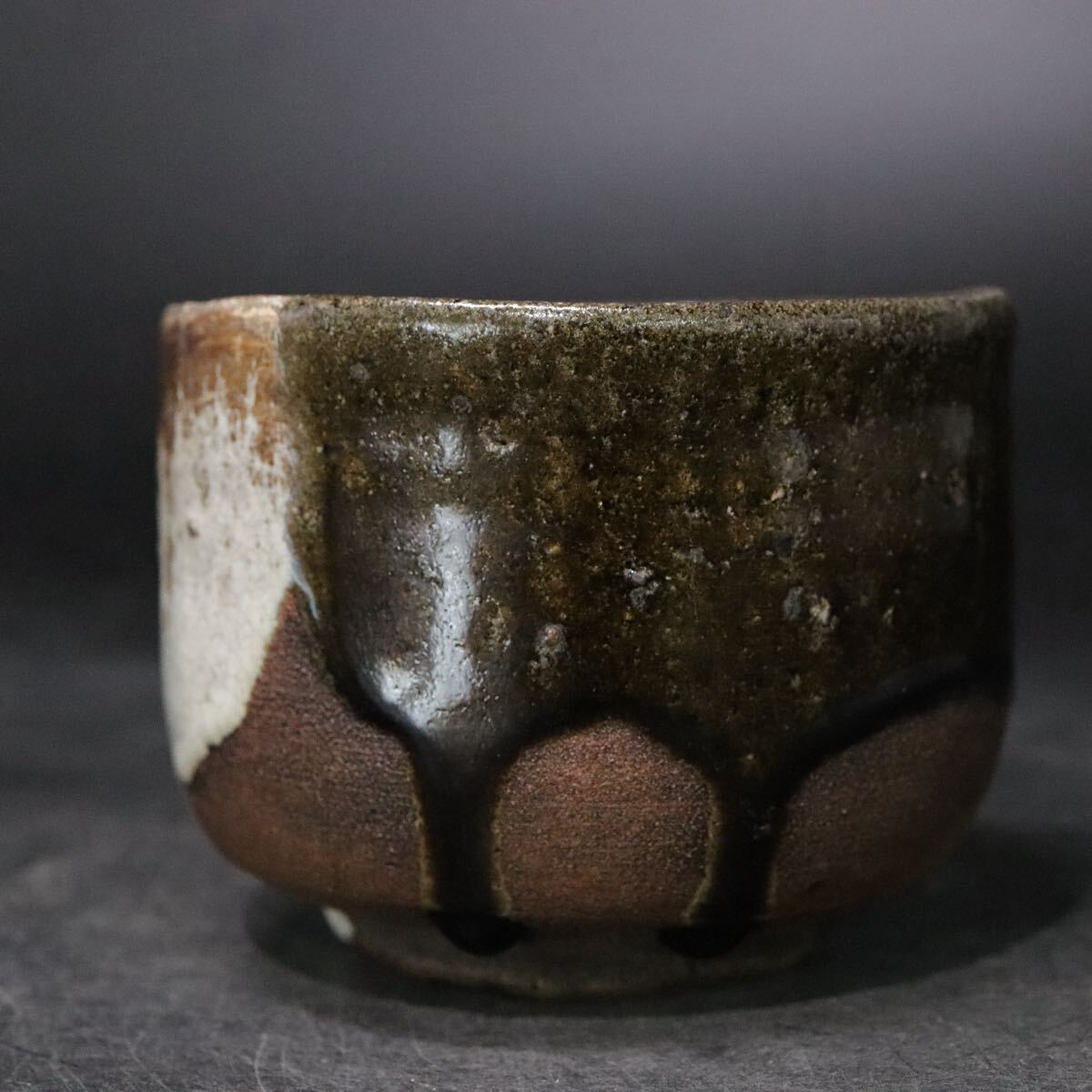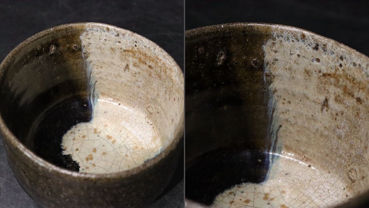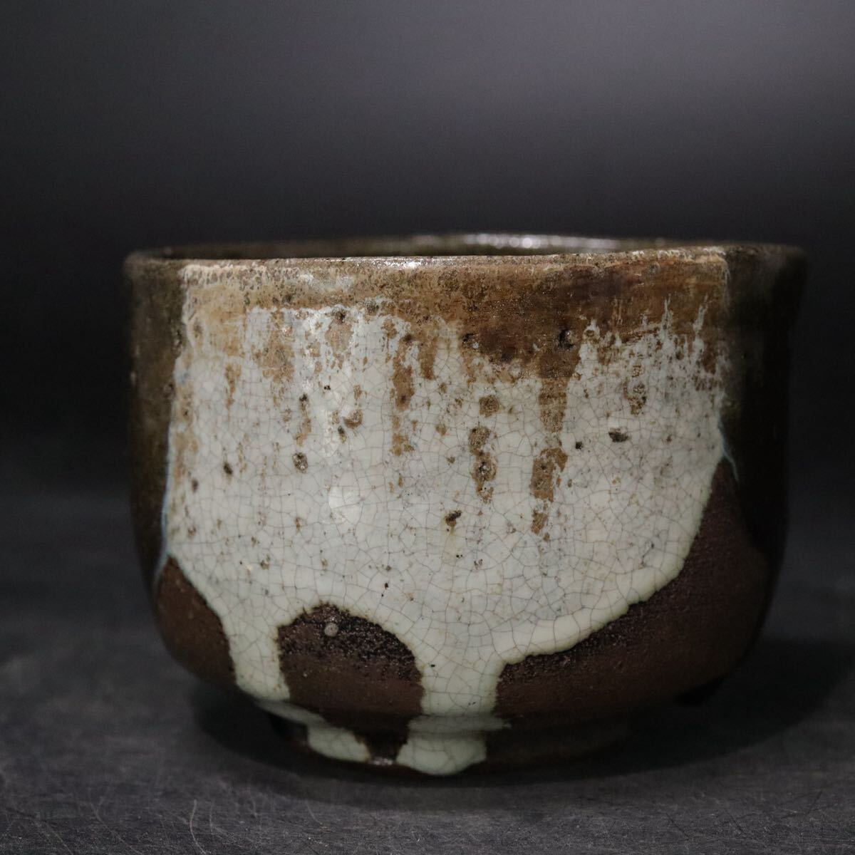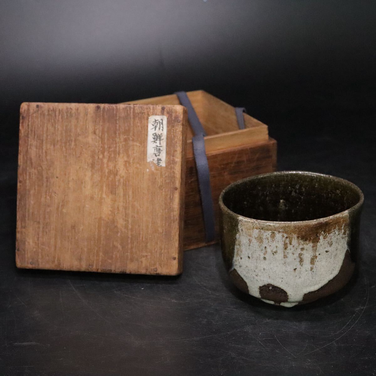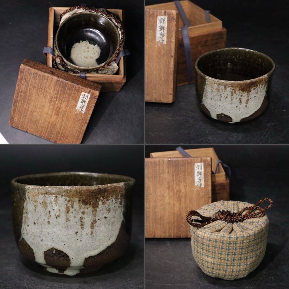 | 時代 朝鮮唐津 茶碗 共箱 ・ 仕覆 付 / 唐津 古唐津 抹茶碗 茶道具 .B692 |