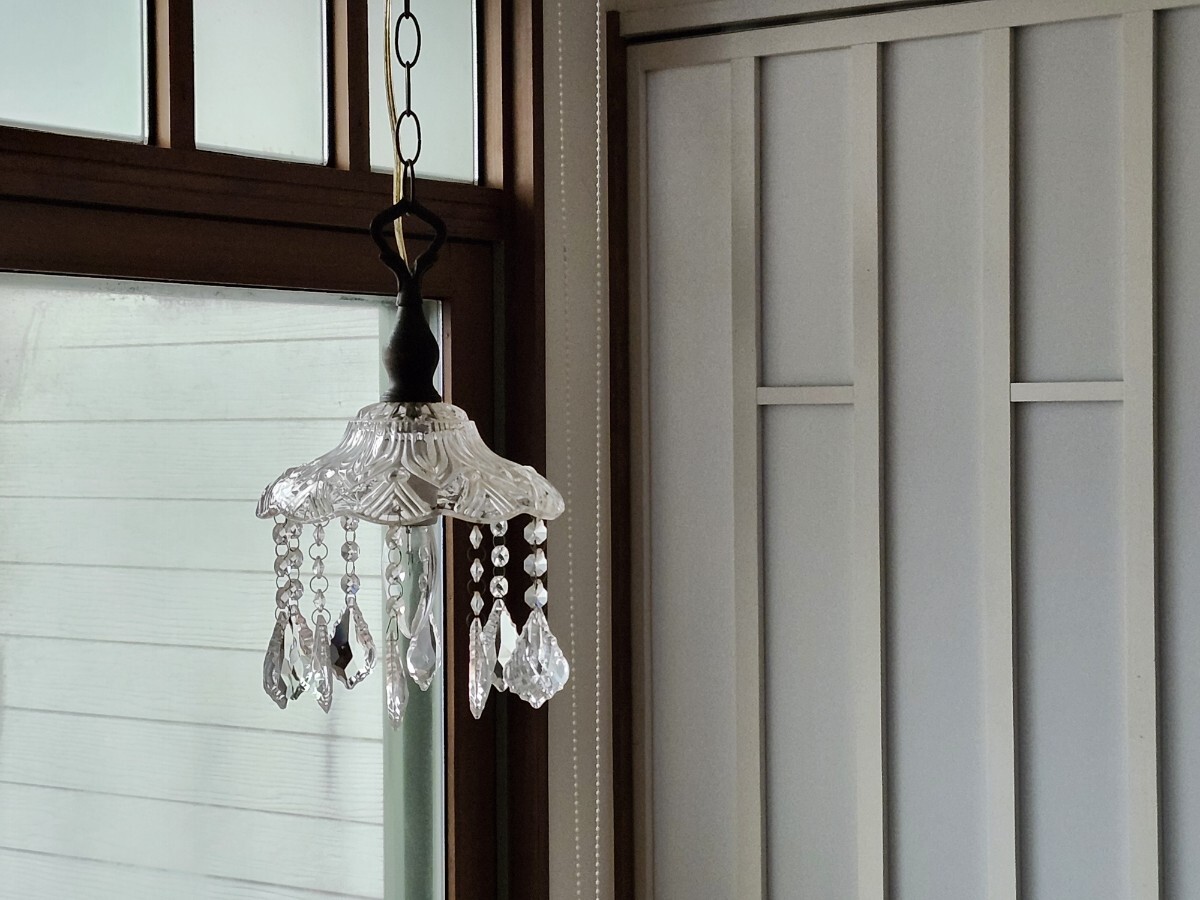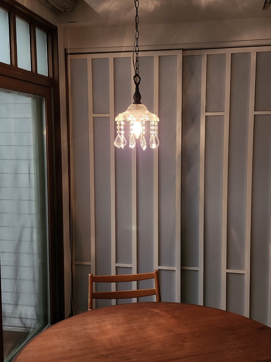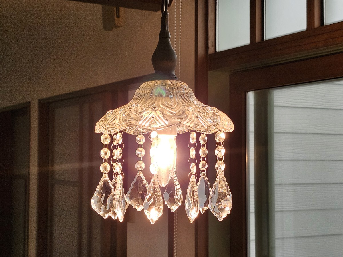 涙型のガラスとガラスシェードをとおした 灯りを美しく拡散してくれます。