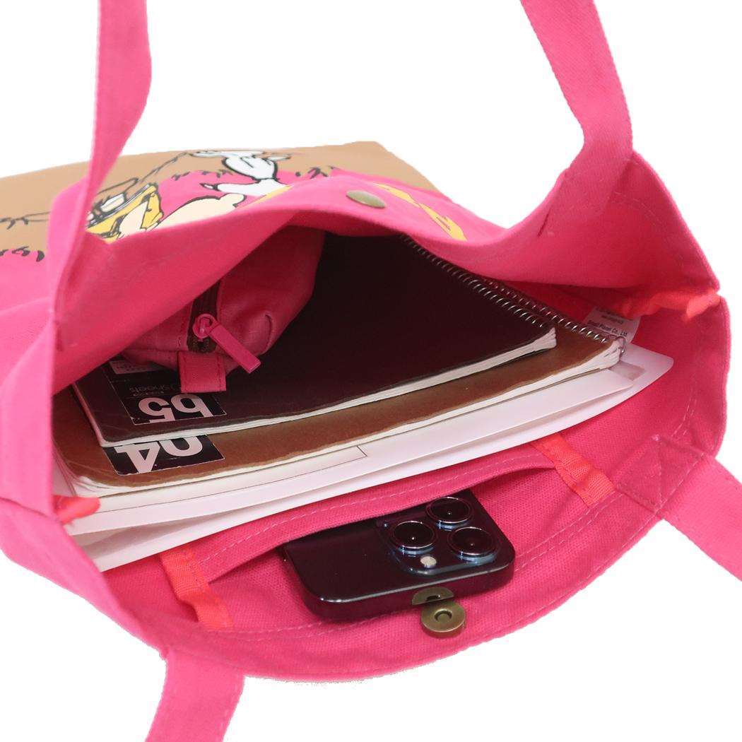 使い勝手抜群のかわいいトートバッグ 大人気[PEANUTS/SNOOPY]グッズにまたまた可愛いnewアイテム登場こちらは収納力抜群な[トートバッグ]モチーフがデザインされた織りネーム付きA4サイズのノートやペットボトルなどしっかり収納できます内ポケット付きで小物も分けて収納しやすいデザインいろいろあるのでお気に入りを揃えてくださいサイズ:約305x400mm素材:コットン/レーヨン