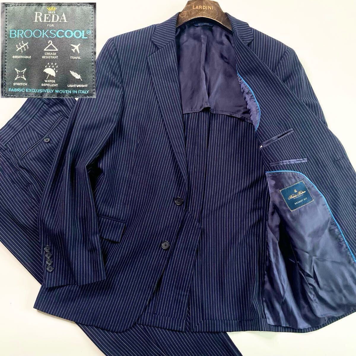 ブルックスブラザーズ×レダ「BROOKS COOL」の高機能トラベルセットアップスーツをこの機会にぜひ!ネイビーストライプの現行美品を、自信を持ってお届けします。ご入札お待ちしています!