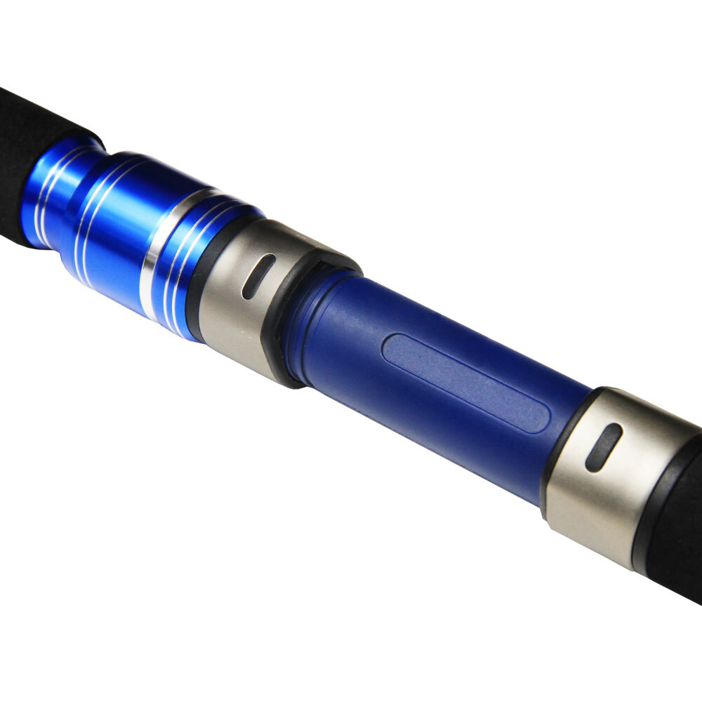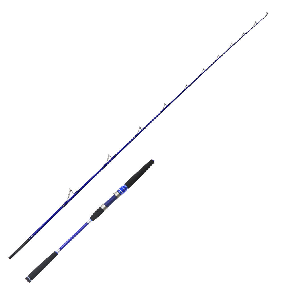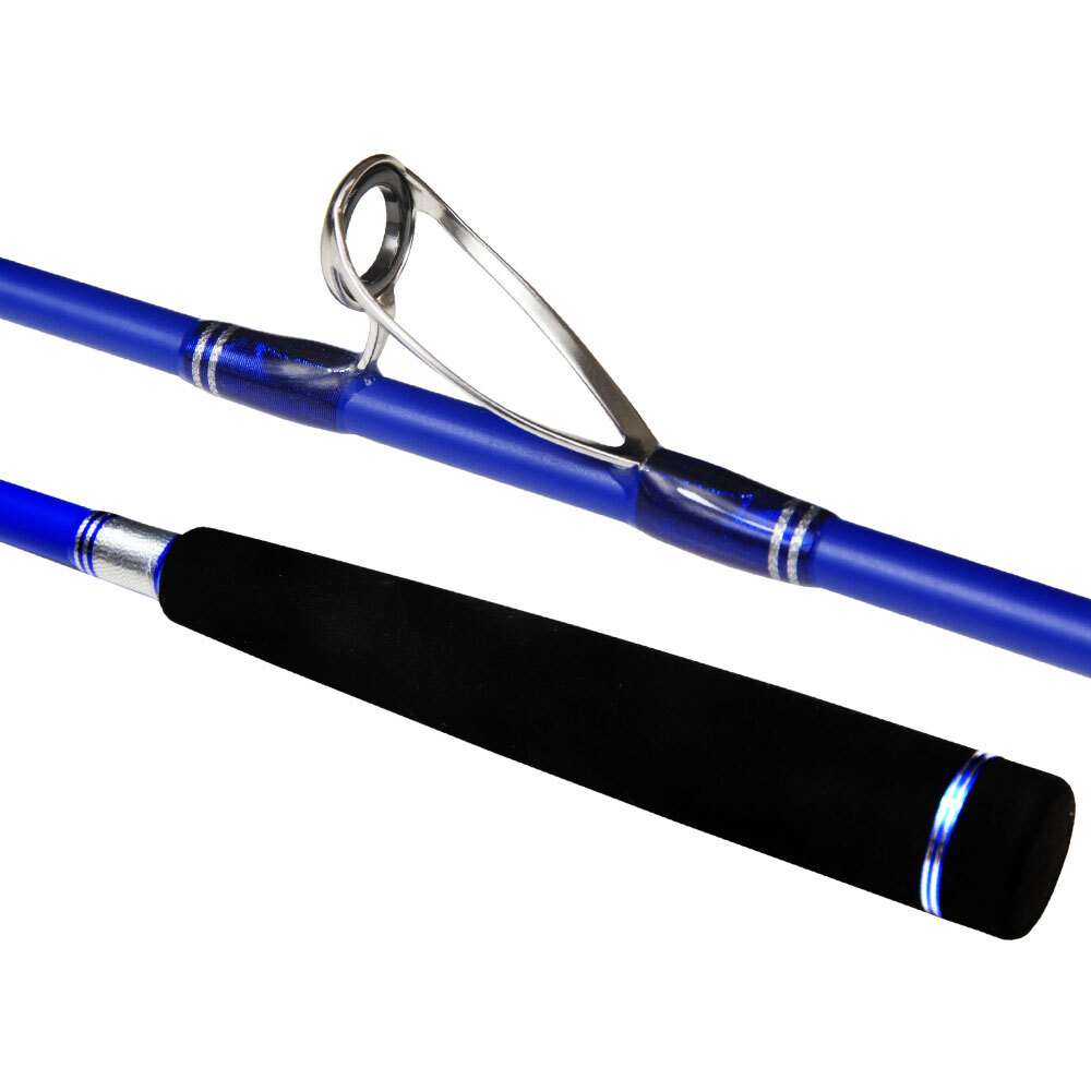 美しいマットブルーを基調にシルバーとブルーのスレッドをあしらい、洗練されたデザインが特徴的な船釣り用フルグラスソリッドロッドです。