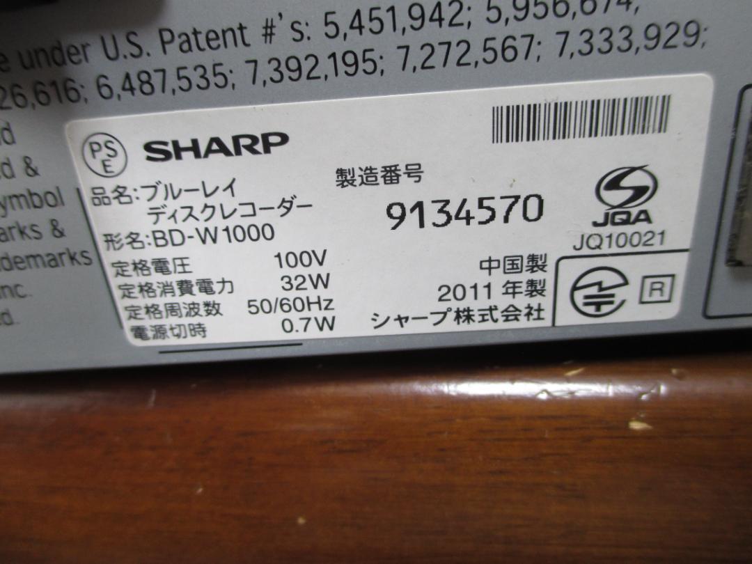 ☆シャープ 1TB 2チューナー BDレコーダー BD-W1000